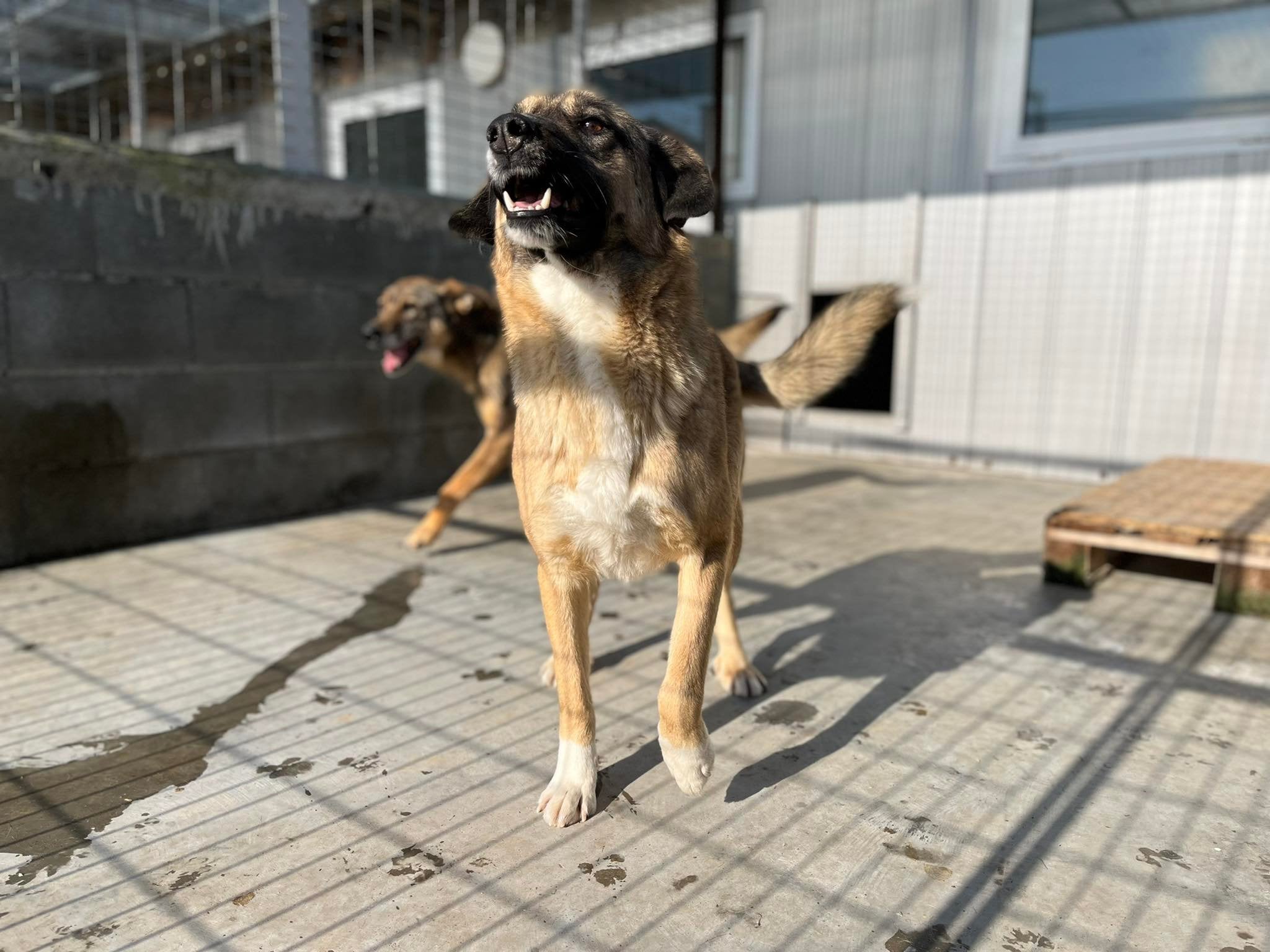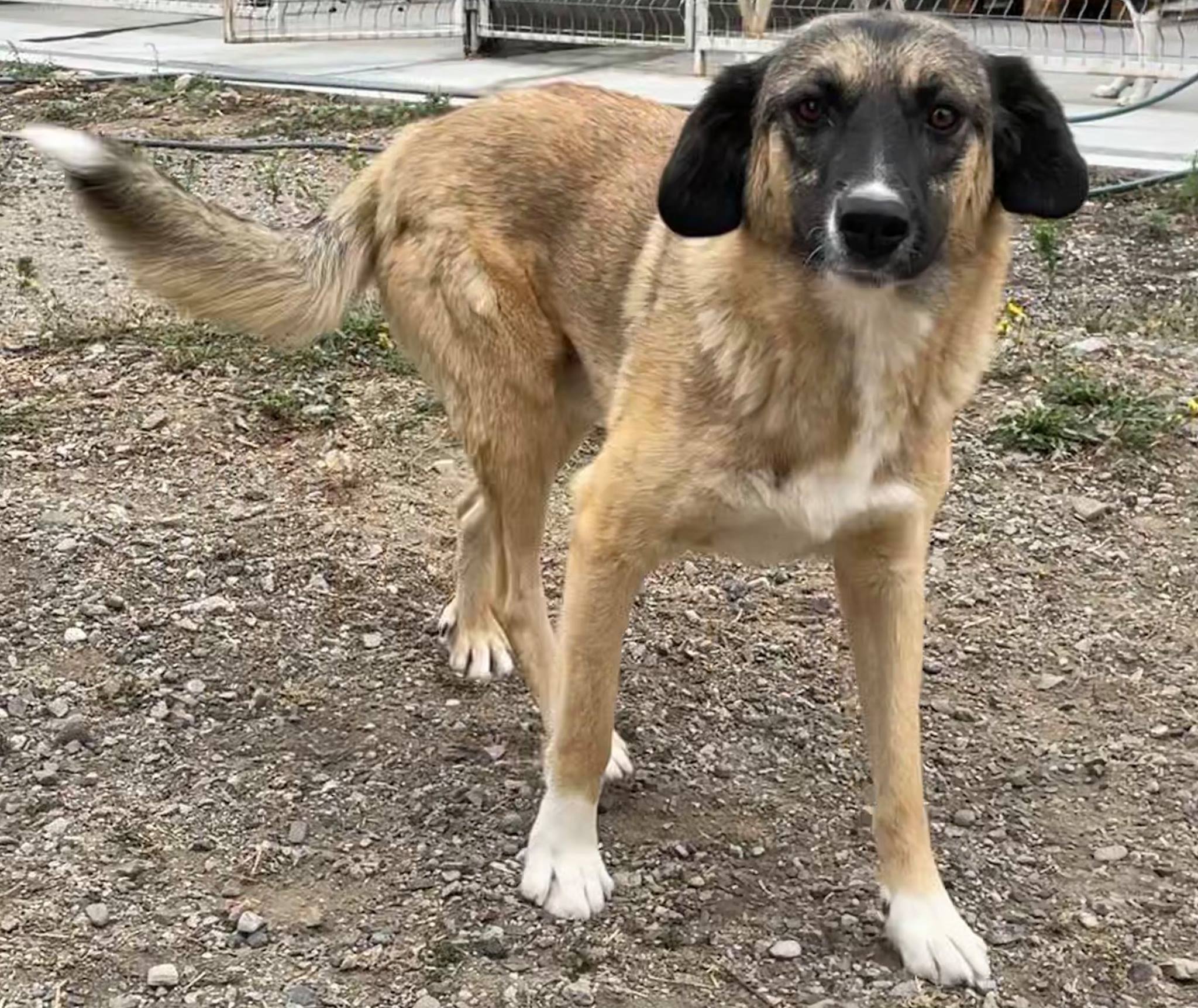 Nicht nur junge Hunde brauchen Hilfe. Auch dieser 2-3 jähriger Hund und seine Freundin brauchen Hilfe. Sie wurden 40 km außerhalb der Stadt an der Autobahn ausgesetzt, an dem LKW-Fahrer anhalten, um eine Pause einzulegen. Dies ist ein gefährlicher Ort, da er direkt an der Autobahn ist. Hier lassen einige Leute gerne Tiere zurück, die sie nicht mehr wollen. Die beiden versuchen dort Essen von den Menschen zu bekommen und das stört die meisten Menschen. Manchmal kriegen sie was, manchmal nicht. Eine Frau, die die beiden dort immer sieht, hat uns nun um Hilfe gebeten. Der süße ist sehr misstrauisch uns Menschen gegenüber, aber wen wundert das schon. Er ist negativ auf Mittelmeerkrankheiten getestet, seine Blutwerte sehen gut aus, er ist geimpft und auch kastriert.