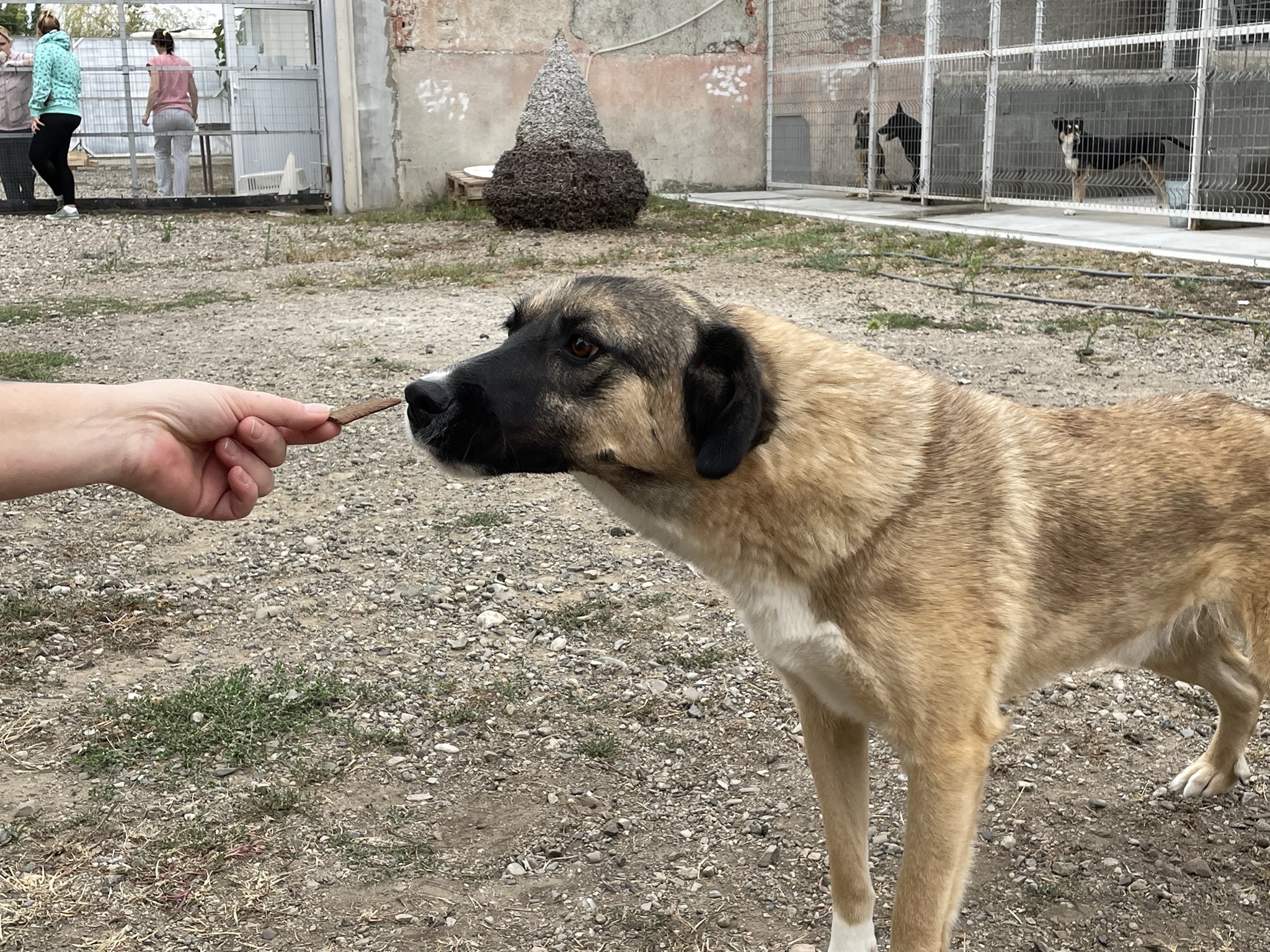 Ajax ist anfangs etwas schüchtern, jedoch ein sehr lieber Hundemann. Die Leine mag er noch gar nicht, aber er mag Leckerlies und die nimmt er ganz vorsichtig aus der Hand.