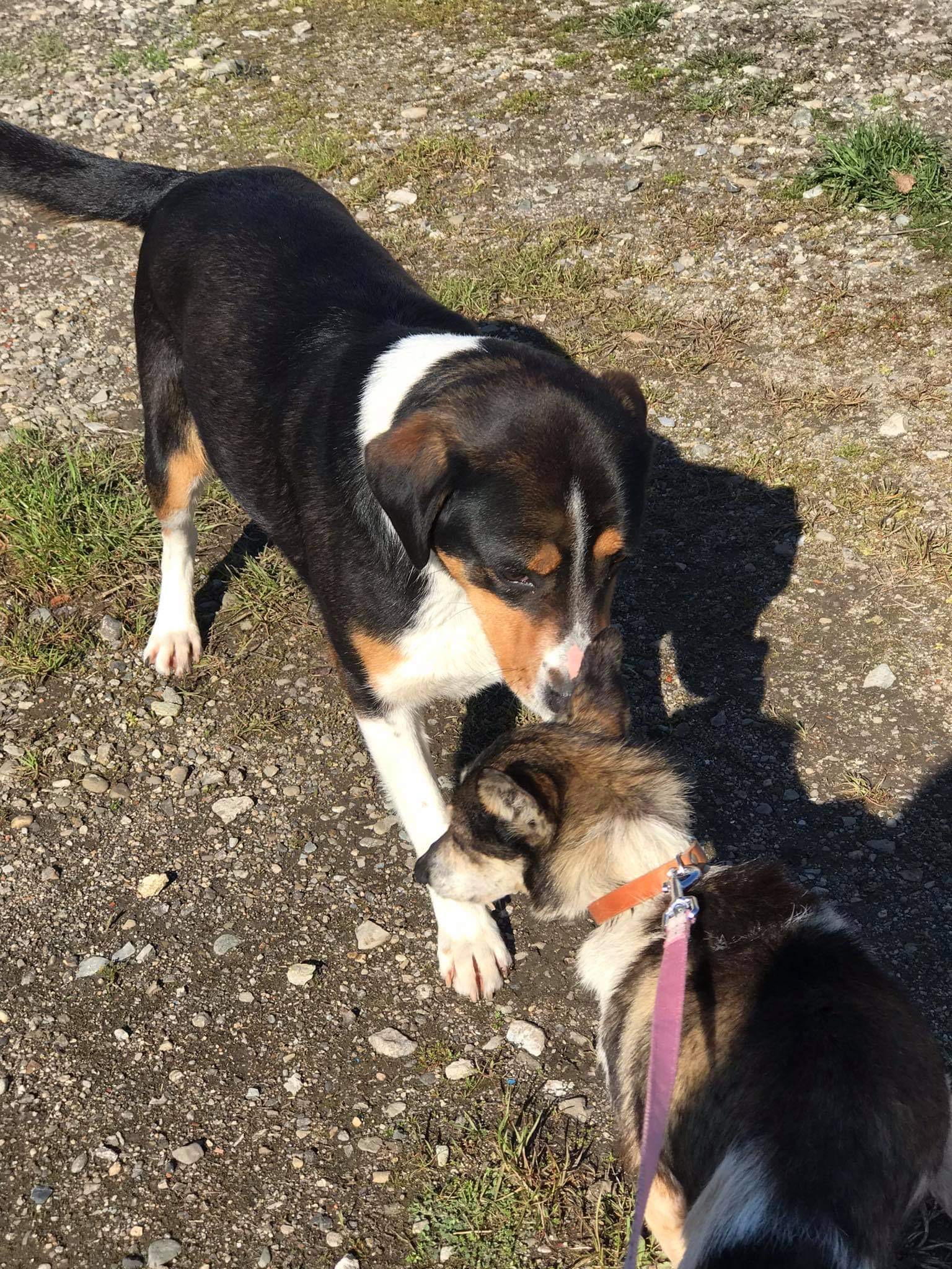Unsere kleine Angstmaus Yannie hat sich super entwickelt. Sie ist weiterhin sehr vorsichtig und schaut genau, was man macht. Allerdings ist sie auch interessiert und nimmt sich einiges von nicht so ängstlichen Hunden an. So kommt sie und nimmt auch Leckerlies aus der Hand. Anfassen lässt sie sich jedoch noch nicht. Yannie ist eine sehr ruhige Hündin. Und mit viel Geduld und Zeit wird sie perfekt.