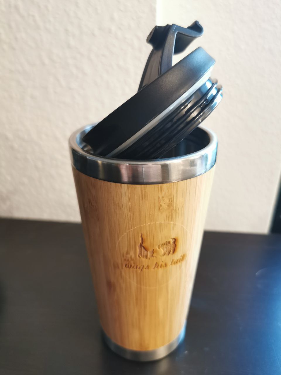 Der doppelwandige Kaffeebecher aus Edelstahl überzeugt durch sein hochwertiges Bambus-Finish und macht ihn damit zu einem echten Hingucker. Der personalisierte Kaffeebecher mit Gravur fasst stolze 400 ml und ermöglicht es dir, genug von deinem Getränk mitzunehmen. Da Bambus ein natürliches Produkt ist, es kann daher zu leichten Abweichungen in Farbe, Dekor und Maßen kommen. Das macht jedoch jeden Becher zu einem Einzelstück. Dank des Deckels mit schiebe Verschluss bleibt der Kaffee auch bei Autofahrten oder Busfahrten im Becher und schwappt nicht heraus.