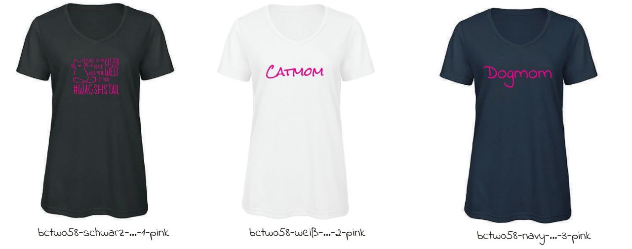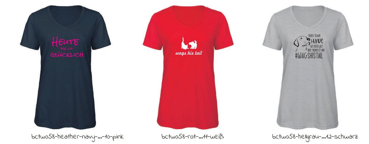 Bedrucktes V-Neck-T Shirt in den unten gezeigten Farben mit dem Wagshistail Logo und Schriftzug und