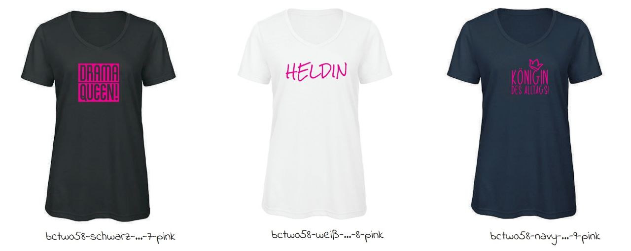 Die Farben in Kombination mit dem Druck seht ihr unten. Ihr könnt entsprechend der Bestellnummern eure Kombination ordern.