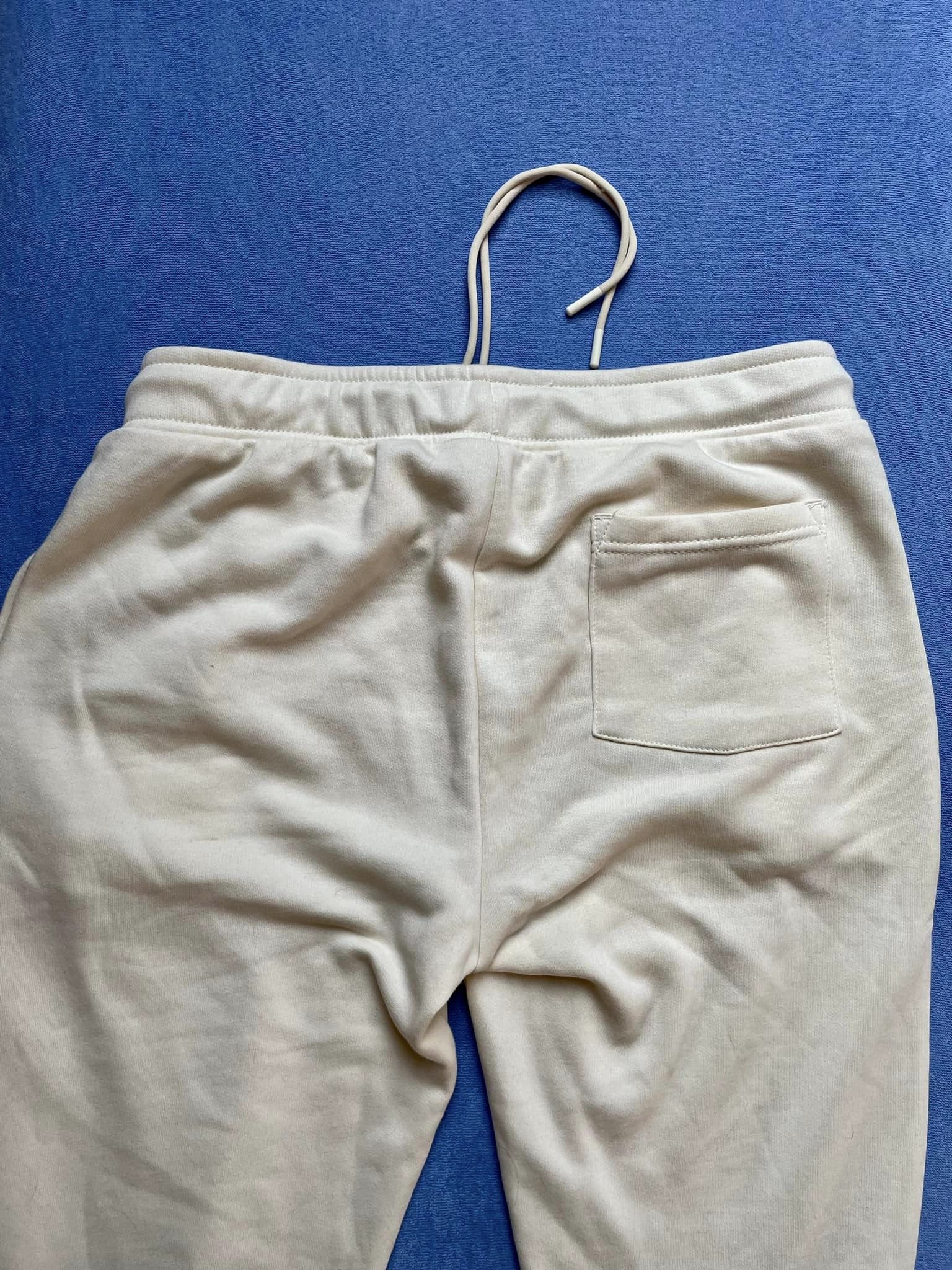 Hose/ Jogginghose, Gekämmte, ringgesponnene Bio-Baumwolle / Polyester Hochwertige French Terry Qualität, Angeschnittener, elastischer Bund mit Kordel, 2 seitliche Eingrifftaschen und eine Gesäßtasche, Tear off!® – Label, Lange Hose, Beinabschluss ohne Bündchen, mit Bündchen oben. Verarbeitung Gekämmte Baumwolle, Innen nicht angeraut.