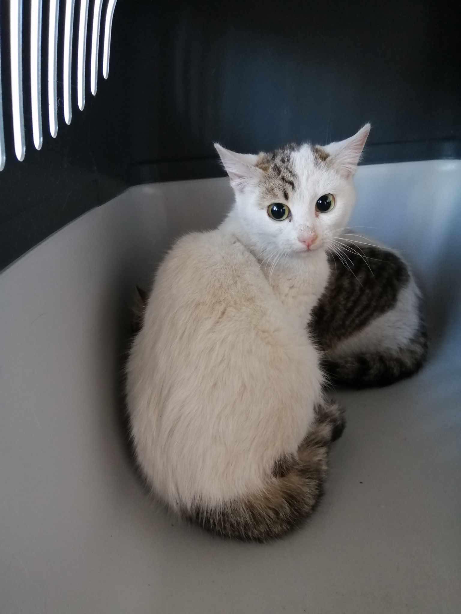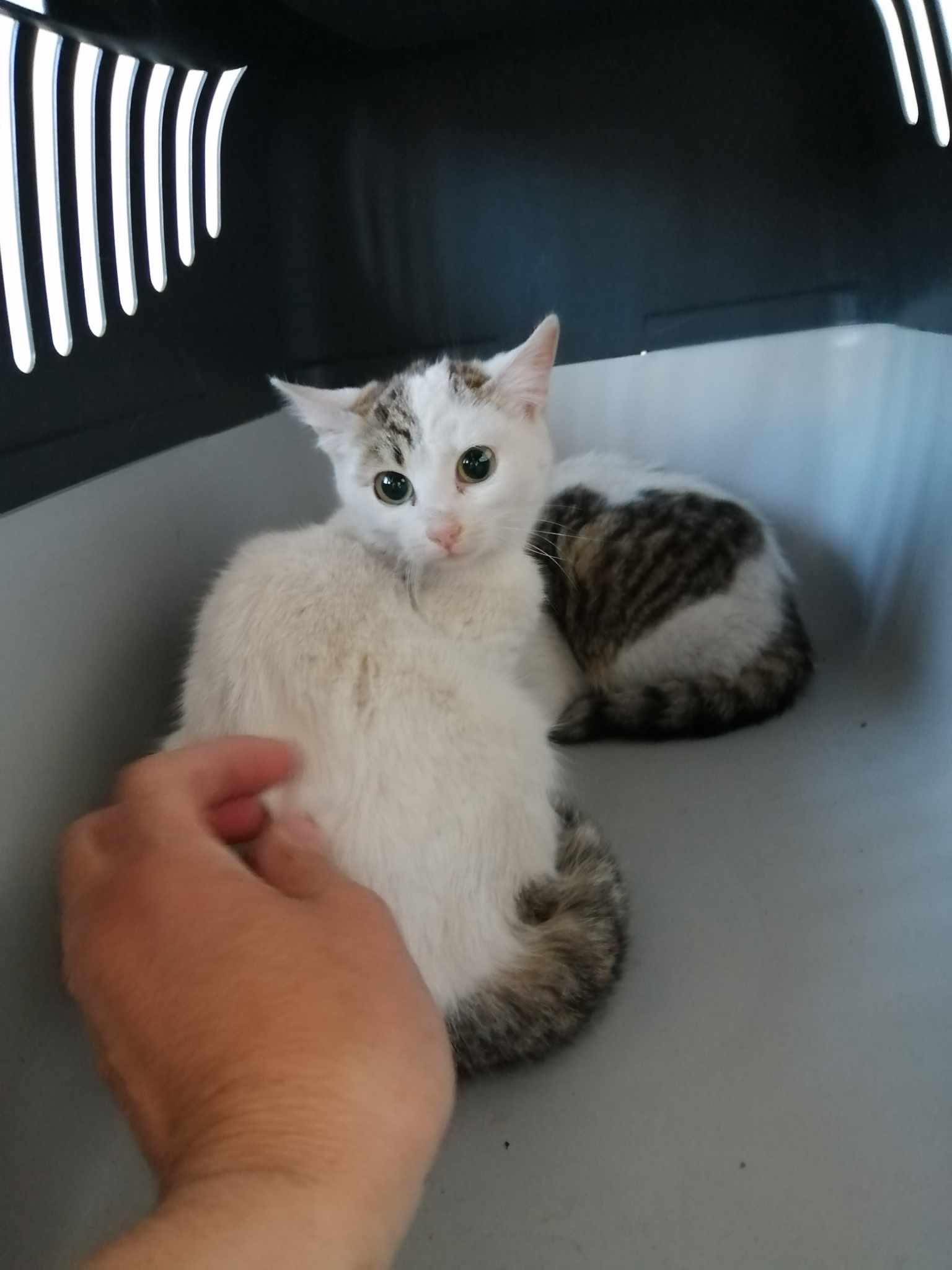 Das Katzenmädchen und der Bruder sind bereits ca. 7 Monate alt, wiegen jedoch nur 800 Gramm. Soviel wiegen eigentlich 2 Monate alte Kitten. Nicht mehr lange und ihr Körper wäre zu schwach gewesen und sie wären verhungert. Durch die starke Unterernährung sind beide Kitten unterentwickelt. Inwieweit Sie dadurch beeinträchtigt sind wird sich zeigen.