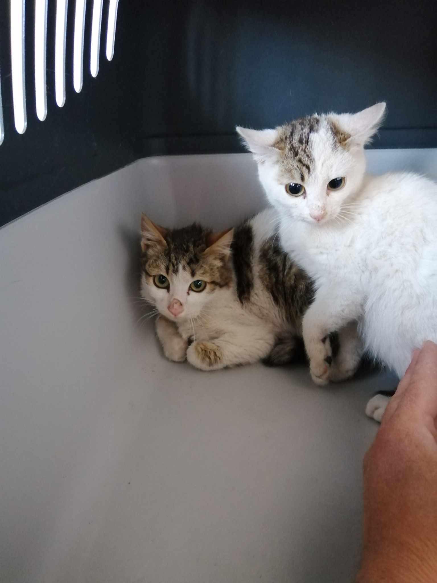 Diese drei Katzen wurden aus einem Wintergarten befreit, in dem sie ohne Wasser, Futter und frischer Luft, eingesperrt waren. Die Menschen haben sich nicht gekümmert. Es war heiß und stickig und die armen Schätze sind nur knapp dem Tot entkommen.
