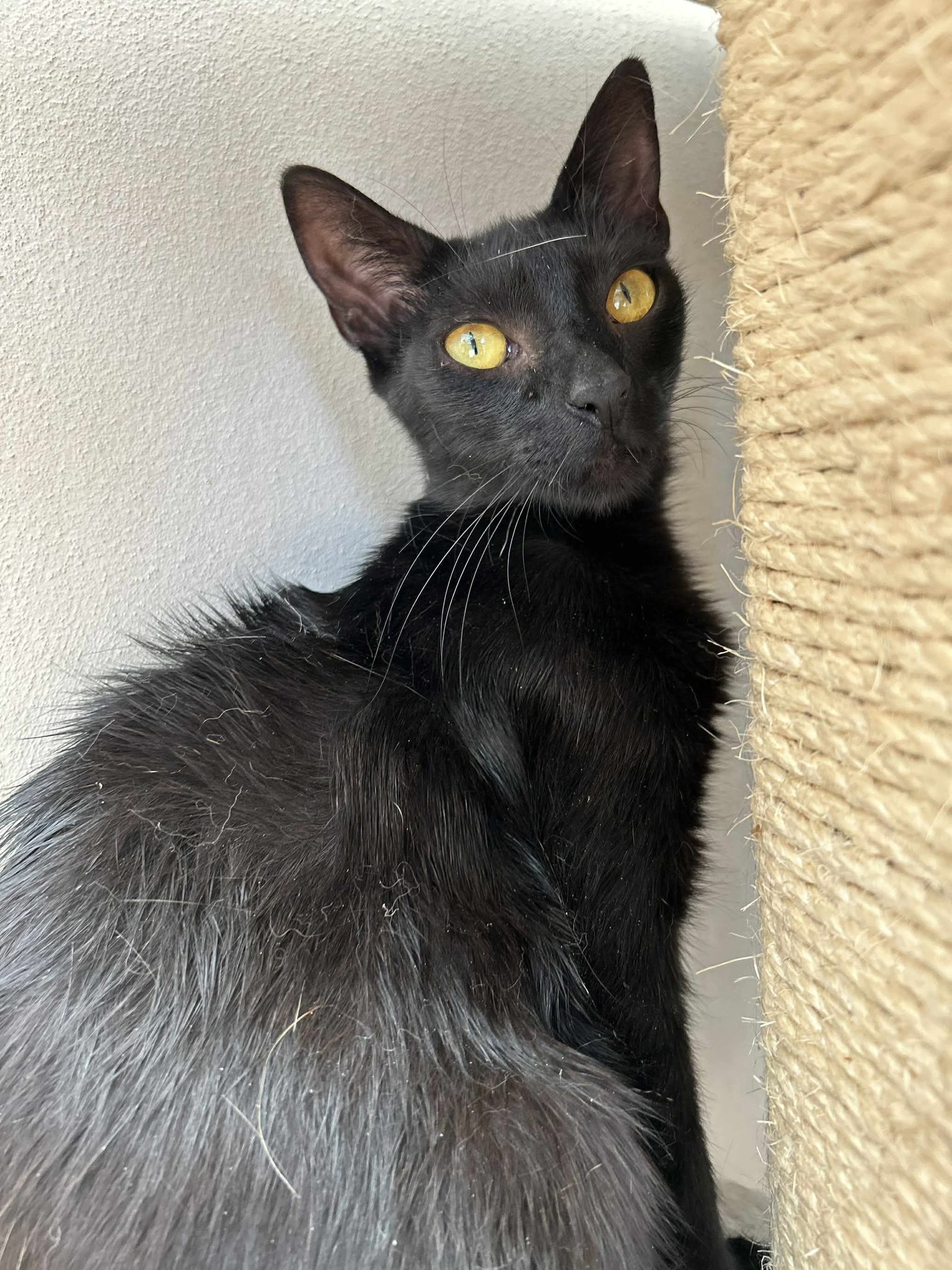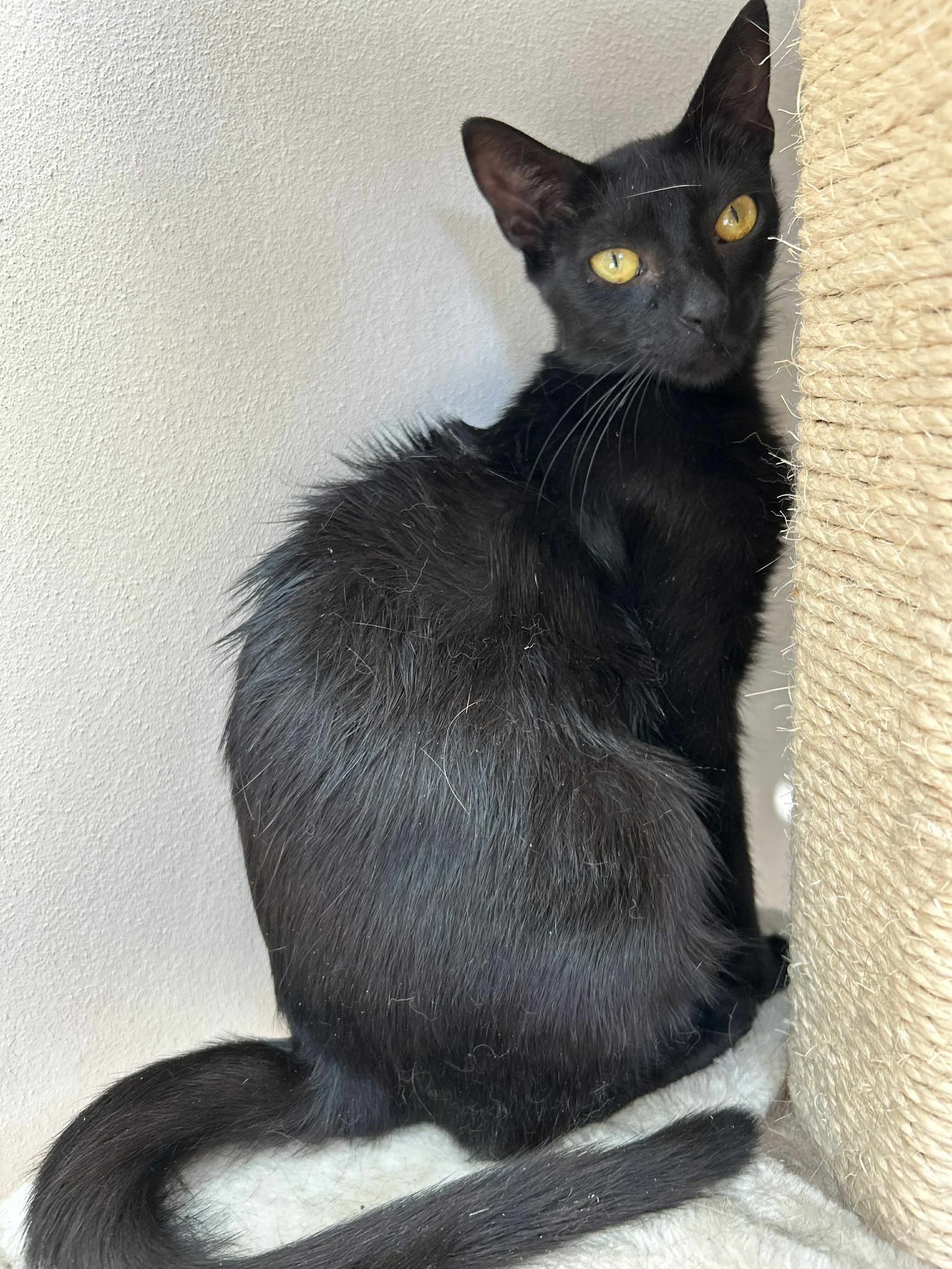 16.6.25 Wir freuen uns sehr, euch endlich mal wieder ein paar Fotos von Querida zeigen zu dürfen. Diese wunderschöne schwarze junge Dame hatte wirklich großes Pech 😔 Da könnt ihr mal sehen, Schwarze Katzen bringen nicht unbedingt anderen Pech sondern leider haben sie es selbst oft fast gepachtet im doppelten Sinne. Sie hatte eine schlimme Beinverletzung und musste eine halbe Ewigkeit in der Box ausharren, bis alles verheilt war. Nun ist sie endlich wieder mit anderen Katzen zusammen in einem unserer Familienzimmer. Danke an Micha und Ihre Freunde für die schönen Fotos. Übrigens sucht die schöne ein zu Hause.