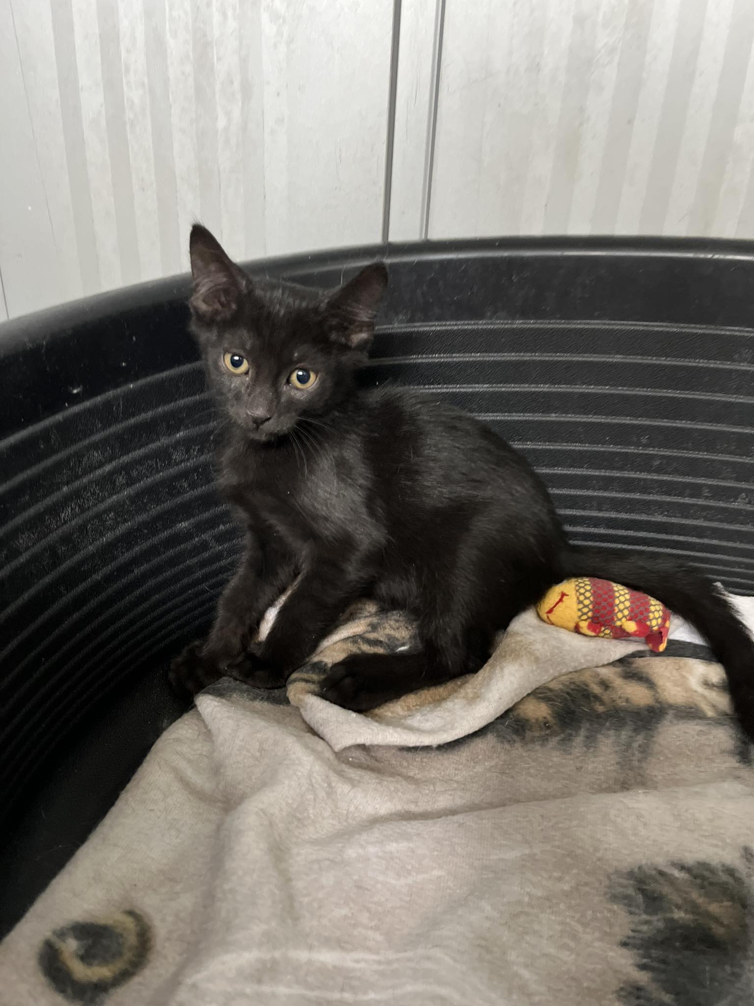 Querida und ihre Geschwister haben ihre Mama verloren. Warum wissen wir nicht. Die Mutterkatze war bekannt in der Metropolis in Sliven. Dort ging sie ein und aus. Dies war auch der Ort an dem sie ihre Kitten zur Welt brachte. Leider kehrte sie eines Tages nicht wieder zu ihren Kleinen zurück. Die Kitten blieben 2 Tage ohne Mutter und waren mehr als nur hungrig. Unsere Billiana bekam einen Anruf von der Sekretärin des Bischoffs, die erfolglos versuchte die Kitten zu sichern. Die Sekretärin bat um Hilfe. Von den vier Kätzchen haben, trotz 24/7 – Betreuung in der Klinik nur 3 überlebt.