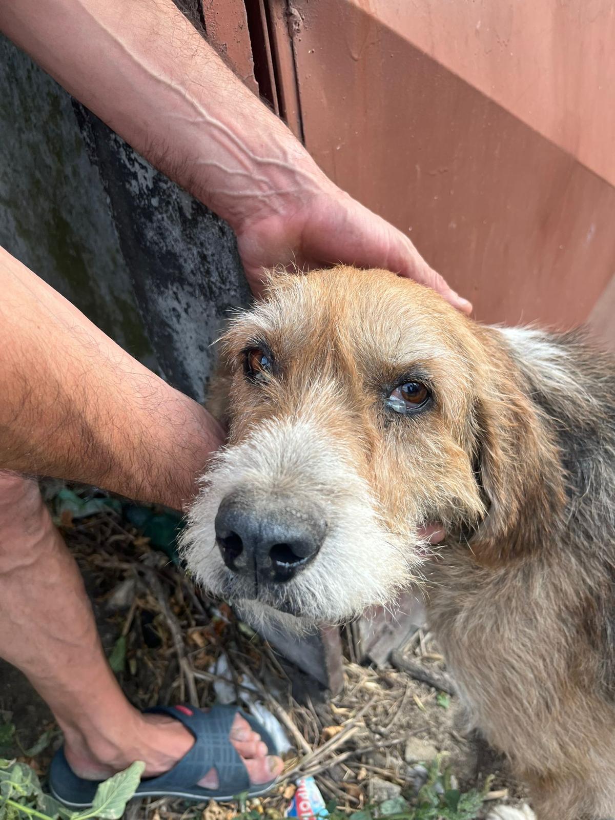 Dieser arme alte Hund ist nun endlich in Sicherheit. Drei Tage lang steckte er zwischen den Betonwänden fest und schrie um Hilfe. Ohne Wasser, ohne Nahrung, ohne die Chance, sich aus seiner Lage zu befreien. Wahrscheinlich ist er aus Angst dort hinengeraten. Er hatte ein Zuhause und einen Besitzer. Aber er ist alt und wurde deswegen wahrscheinlich ausgesetzt. Er wurde positiv auf Anaplasmose getestet.