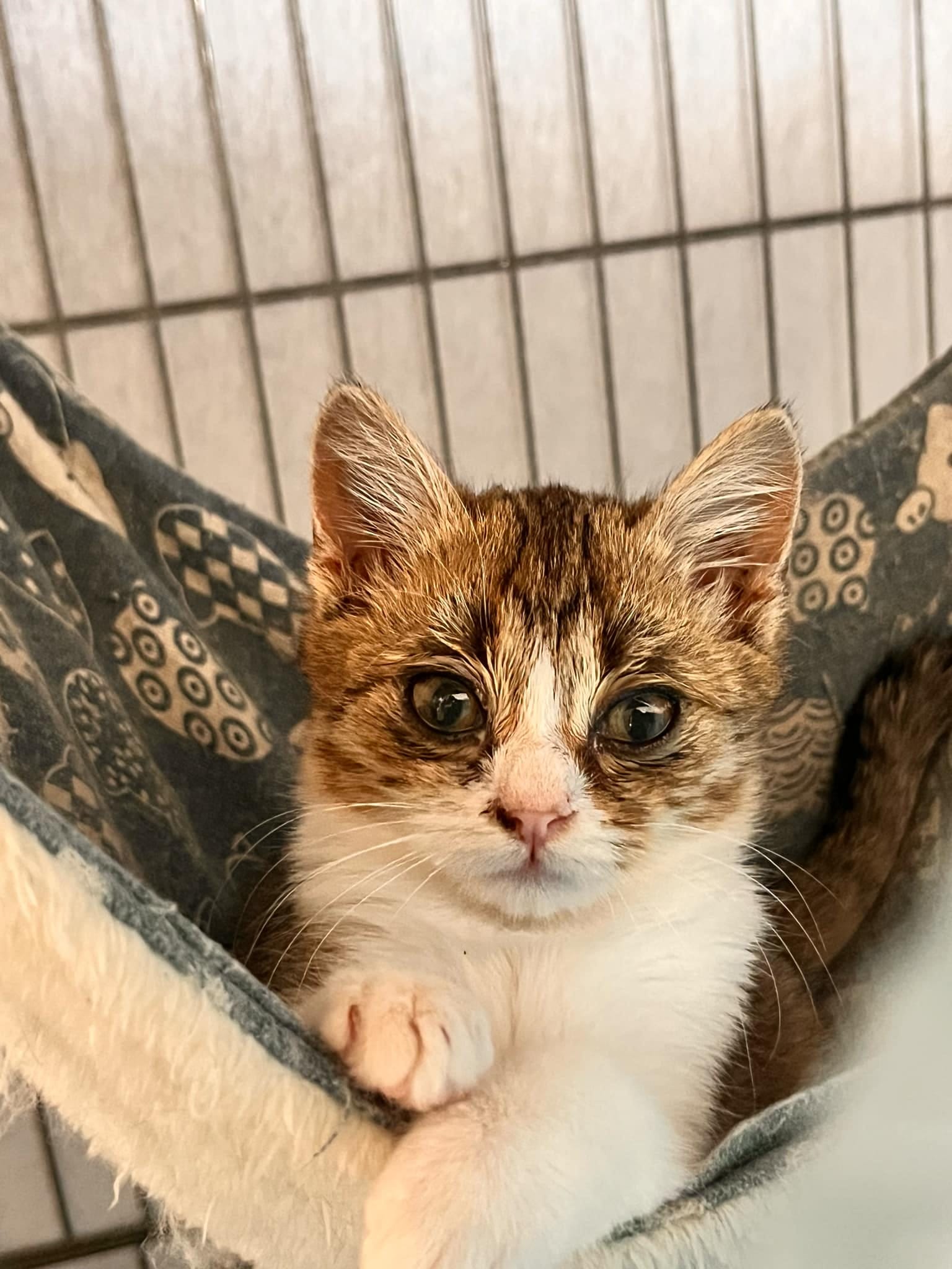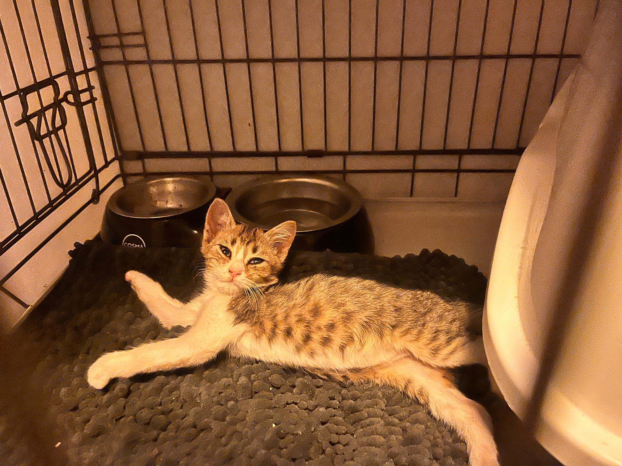 Die Hoffnung sieht, dass es trotz aller Dunkelheit Licht gibt… Am vergangenen Sonntag hatte Stassys Sohn Geburtstag. Sie machten einen Ausflug außerhalb der Stadt um das zu feiern. Plötzlich hörten Sie ein Kitten schreien. Natürlich wäre Stassy nicht Stassy wenn sie nicht immer etwas Futter in ihrem Auto hätte. Als sie de Kitten das Futter geben wollte, sah sie wie klein der arme Tropf war. Nicht nur klein, sondern auch sehr krank. Seine Augen waren bereits von der Infektion komplett verklebt und er schniefte und nieste stark. Kurzerhand beschloss Stassy den kleinen erstmal in ihrem Auto zu lassen und ihn später mit nach Hause zu nehmen. Er wog gerade mal 800g und ist sehr sozial und verspielt trotz seiner schlechten Verfassung. Sie brachte ihn zum Arzt. Er bekam Antibiotika und Augentropfen. Man kann richtig sehen wie es ihm von Tag zu Tag besser geht. Der Verdacht liegt nahe, dass er vor der Stadt einfach ausgesetzt wurde, wie so viele arme Seelen. Nun kann er sich in der Quarantäne bei Stassy erstmal erholen und zu Kräften kommen.