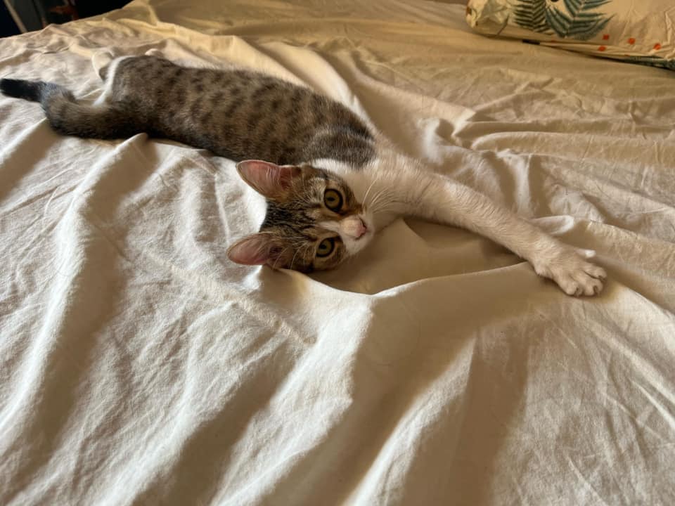 26.8.25 Remy hat einen schönen Kosenamen. Er wird liebevoll Mr Icecream genannt. Das Kätzchen mit den größten Kulleraugen die es gibt in Bulgarien. Er liebt es beim Betten machen zu helfen und legt sich am liebsten auf frisch gewaschene Wäsche. So wie die meisten Katzen 🐈⬛ Remy ist von allen Katzen auf der Pflegestelle bei unserer Stanislava der ruhigste. Er ist ein super süßer, gechillter junger Kater.