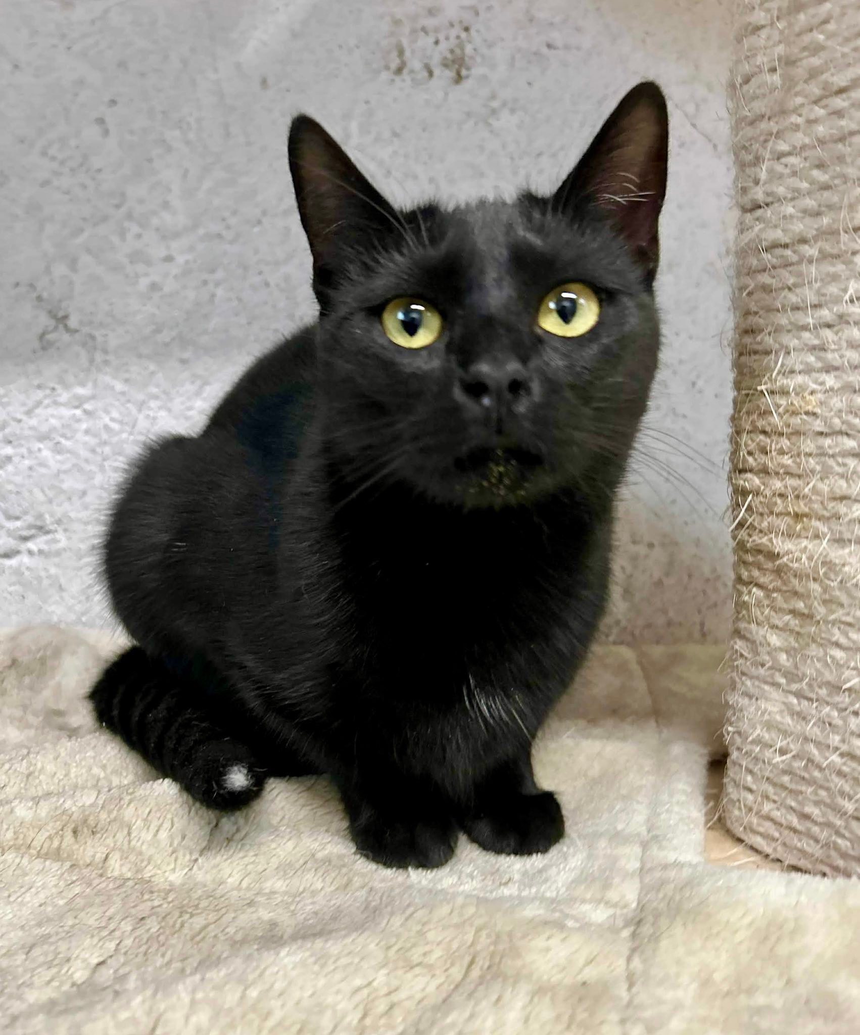 Dieses tolle schwarze Mädchen hat uns sofort begrüßt, als wir Spielbälle und Leckerlis für sie dabei hatten. Sie war überhaupt nicht schüchtern und hat sich auch sofort streicheln lassen. Tiffany lebt momentan leider im Quarantänebereich, bis in den Familienzimmern Platz ist. Man merkt ihr wirklich an, wie sehr sie die Aufmerksamkeit sucht und vermisst. Es ist wirklich nicht schön, für so ein liebes, soziales Madchen im Kafig zu sitzen, und es wäre toll, wenn ihr da draußen jemand eine Chance geben würde.