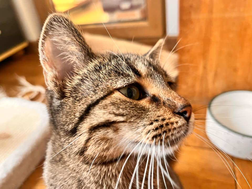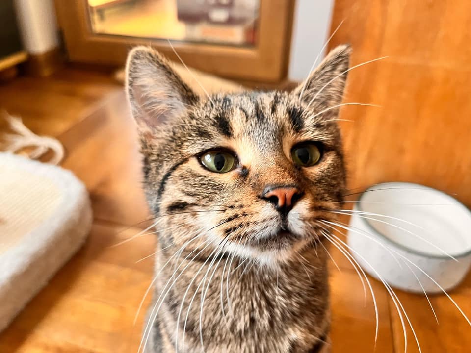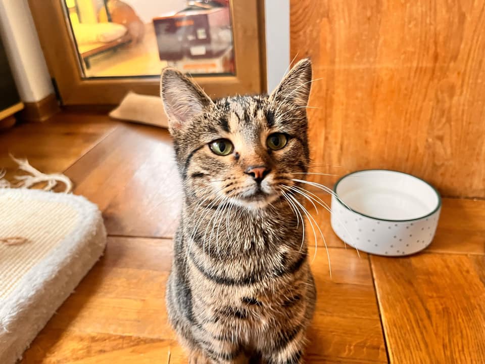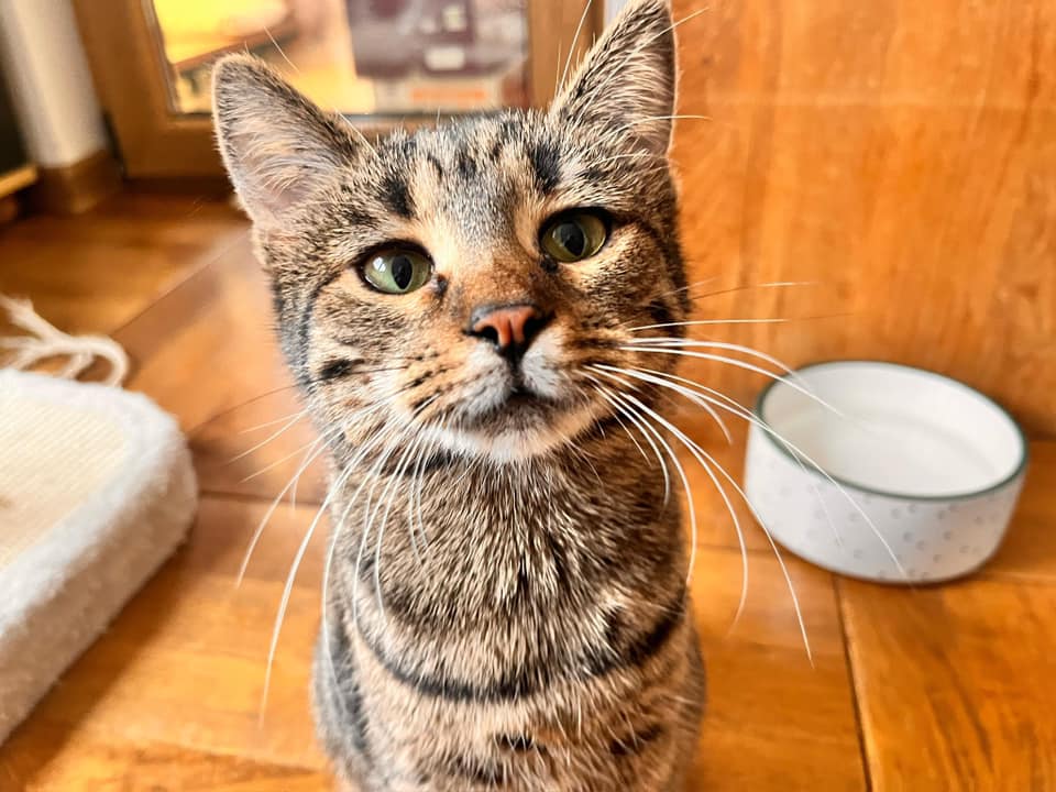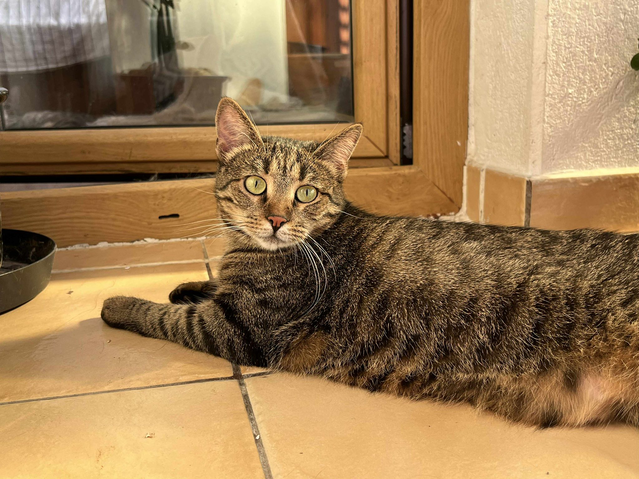 Nia ist nun schon 1 Jahr 🤎 ihren Geburtstag hat die süße Tigerin gar nicht mitbekommen. Sie ist so hübsch mit ihren runden Augen. Nia ist sozial und das Leben in einem Haushalt mit Kind und Katzen gewohnt.