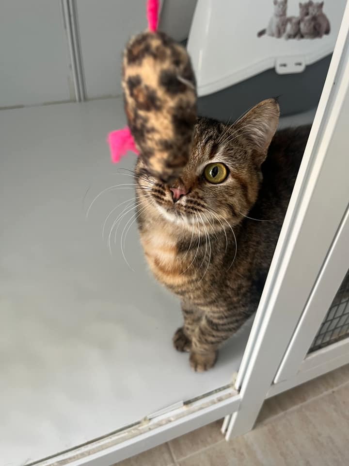 Sie sucht das Eine, die Eine, den Einen. Sie ist so klein und so zauberhaft. So lebendig und fröhlich, verspielt und selbstbewusst, süchtig nach Liebe. Das Problem ist, dass sie aufgrund ihrer Darm Problematik ab und zu ein bisschen Kot verliert. Sie merkt es nicht und es ist in all den Monaten, die sie schon bei uns ist wirklich viel viel besser geworden. Wenn sie doch nur die Chance hätte ein richtiges Zuhause zu bekommen . Wir sind sicher, dass es sich dann ganz legen würde. Gibt es dort draußen einen Menschen, der sie lieben könnte, so wie sie ist ? Heaven kommt gut mit Sylvester Klar, der ist sehr ruppig und grob. Sie spielt mit ihm, tobt durch den Gang und kann sich ihm wieder setzen. Sie ist eine ganz tolle Katze, die auf keinen Fall alleine leben sollte.