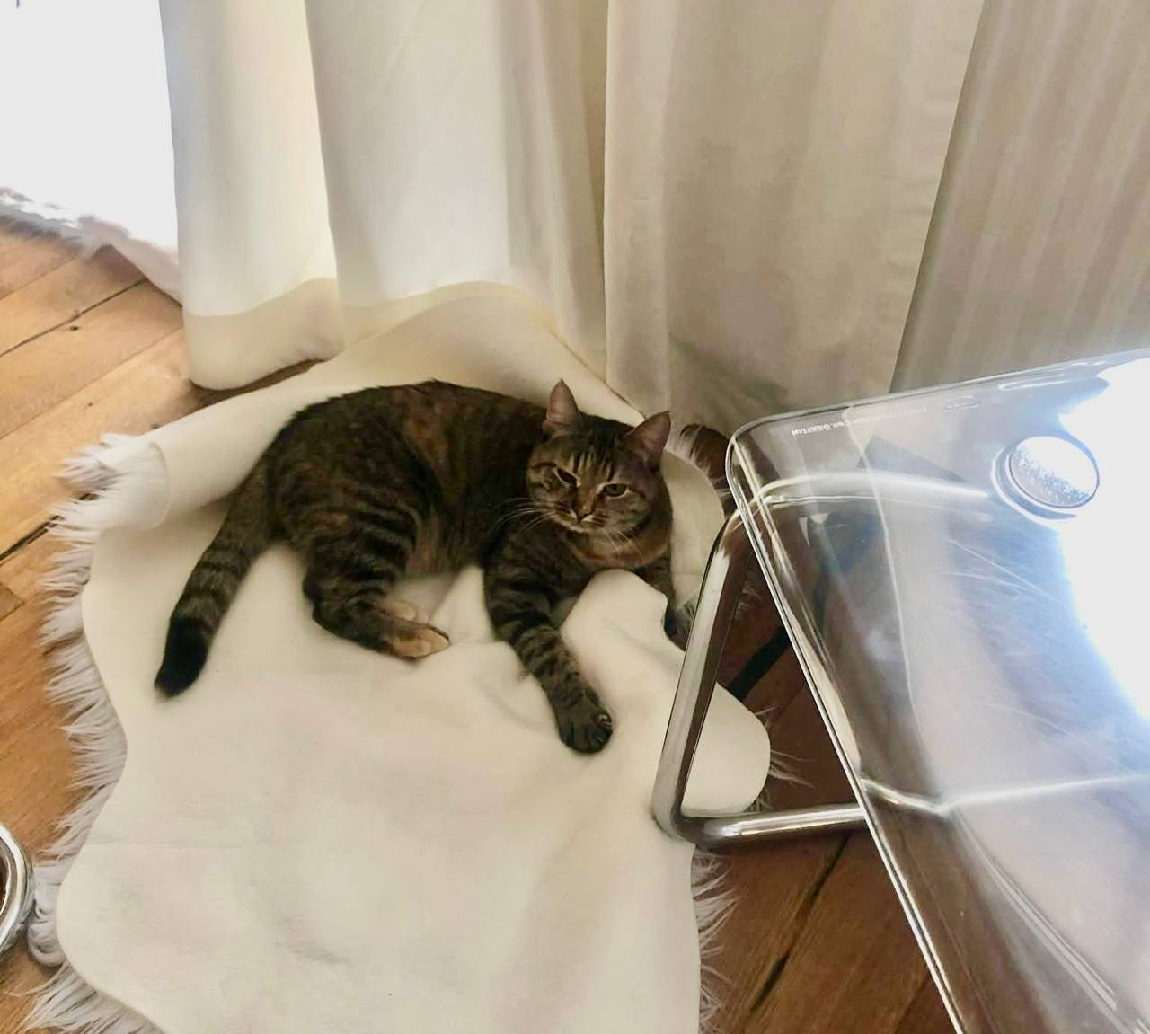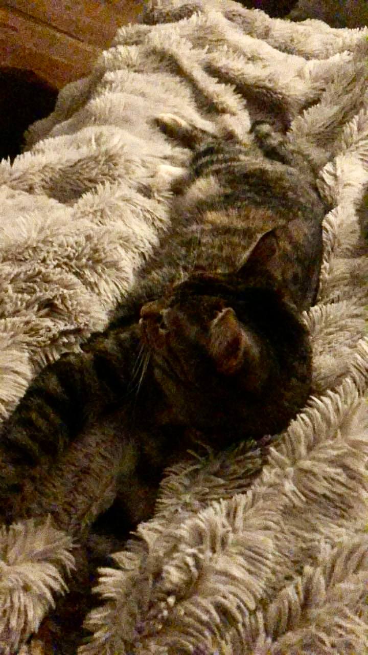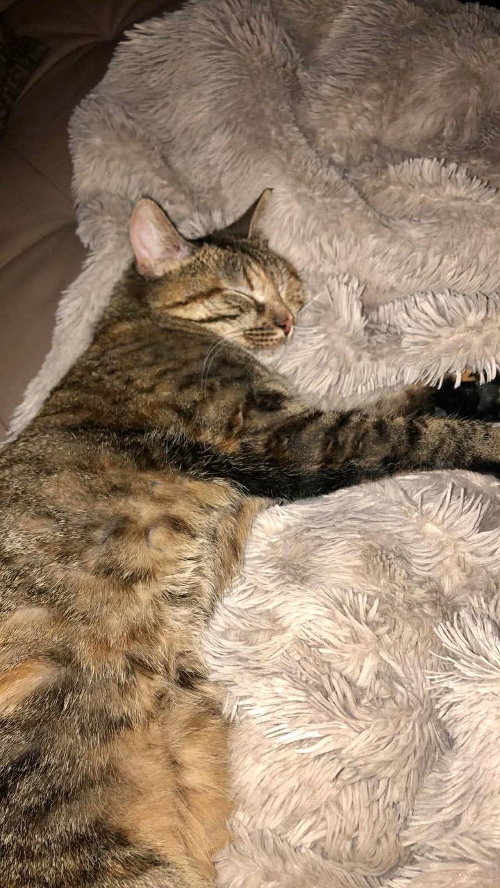 Es wurde eine weitere Katze bei unserer Tierärztin abgegeben zur Euthanasie . Das ist sie. Sie hatte einen Rektumprolaps. Jemand hat sie zur Euthanasie in die Klinik gebracht, aber unsere Tierärztin Kojleeva war wieder nicht einverstanden. Sie nahm sie mit und sagte ok zu der Dame. Aber sie tötet sie nicht, sondern unterzog sie einer Operation am Rektum. Die erste Operation war nicht erfolgreich. Der Tierarzt führte zwei weitere Eingriffe durch, bis das Rektum stabil ist. Jetzt frisst die Katze spezielles Futter mit mehr Ballaststoffen. Wieder frisst sie morgens 30 und abends 30 Gramm Eucanuba mit mehr Ballaststoffen oder irgendein anderes Futter, das speziell für behinderte Katzen ist. Ihr Problem ist, dass sie ins Katzenstreu pinkelt und kackt, aber auch unkontrolliert Kot verliert. Sie frisst Futter für weicheren Kot, weil sie keinen Druck im Rektum braucht, bis sie bereit ist, und wir können sicher sein, dass das Rektum stabil ist. Sie bekommt Vitamine des B-Komplexes.
