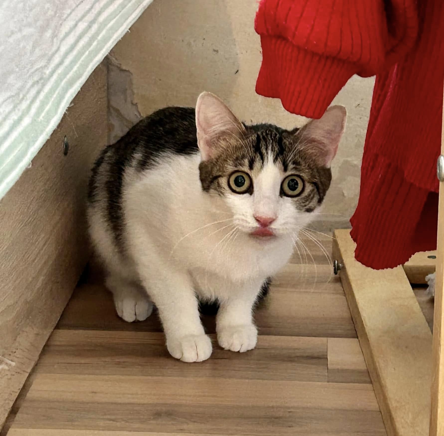 Ein weiteres ungewolltes Katzenkind das man einfach loswerden wollte. Dieses kleine Mädchen wurde von jemandem vor Nikolinas Wohnhaus ausgesetzt. Die kleine war voller Panik und Angst. Wir konnten sie zum Glück nach kurzer Zeit sichern und sie darf sich jetzt bei Nikolina erholen. Sie ist etwas schüchtern gegenüber Leute die sie nicht kennt aber Nikolina vertraut sie bereits und ist ihr gegenüber sehr lieb und verschmust. Die kleine ist um den 15.08.2024 geboren und hat bereits ihre Impfungen erhalten.
