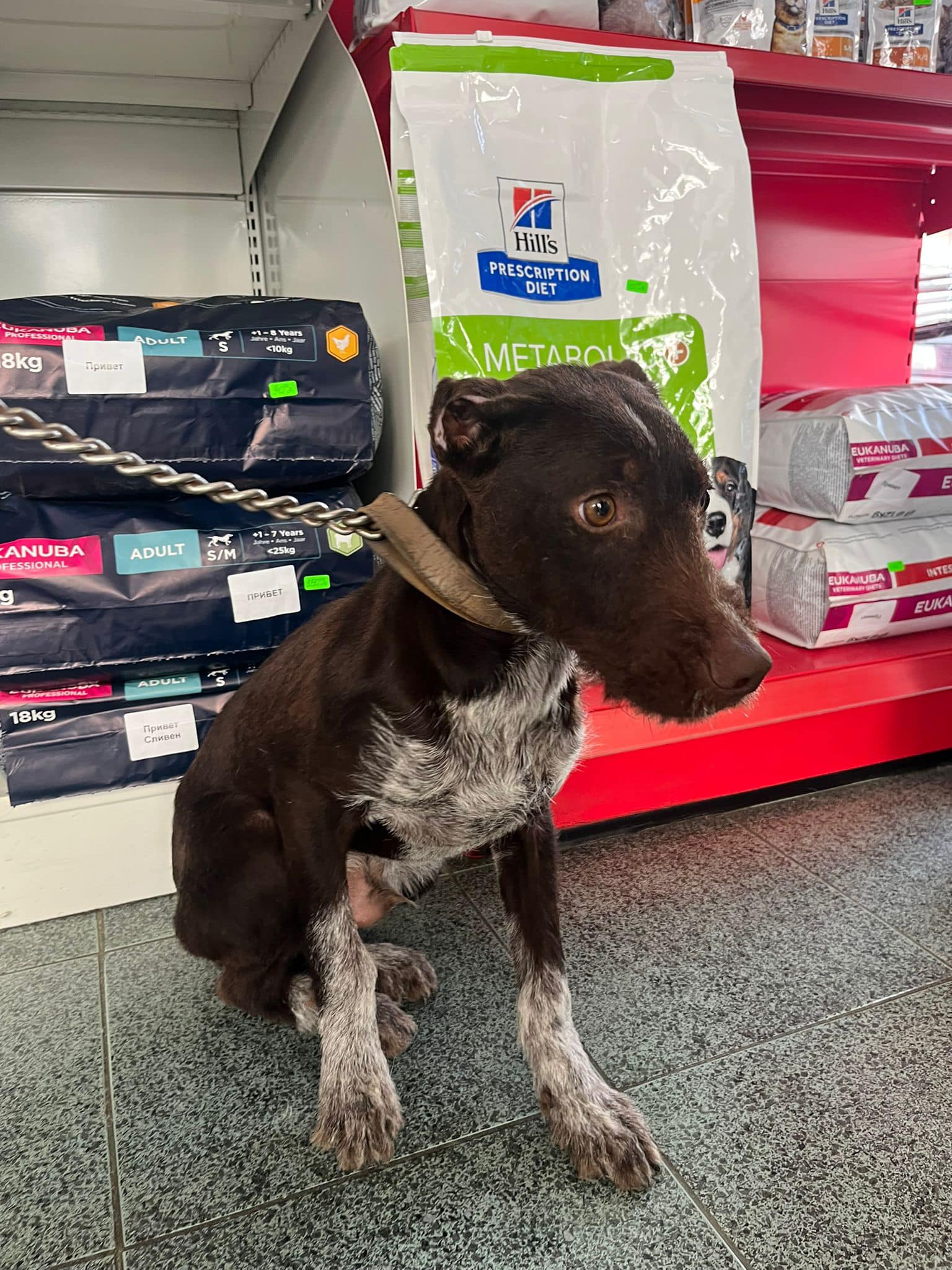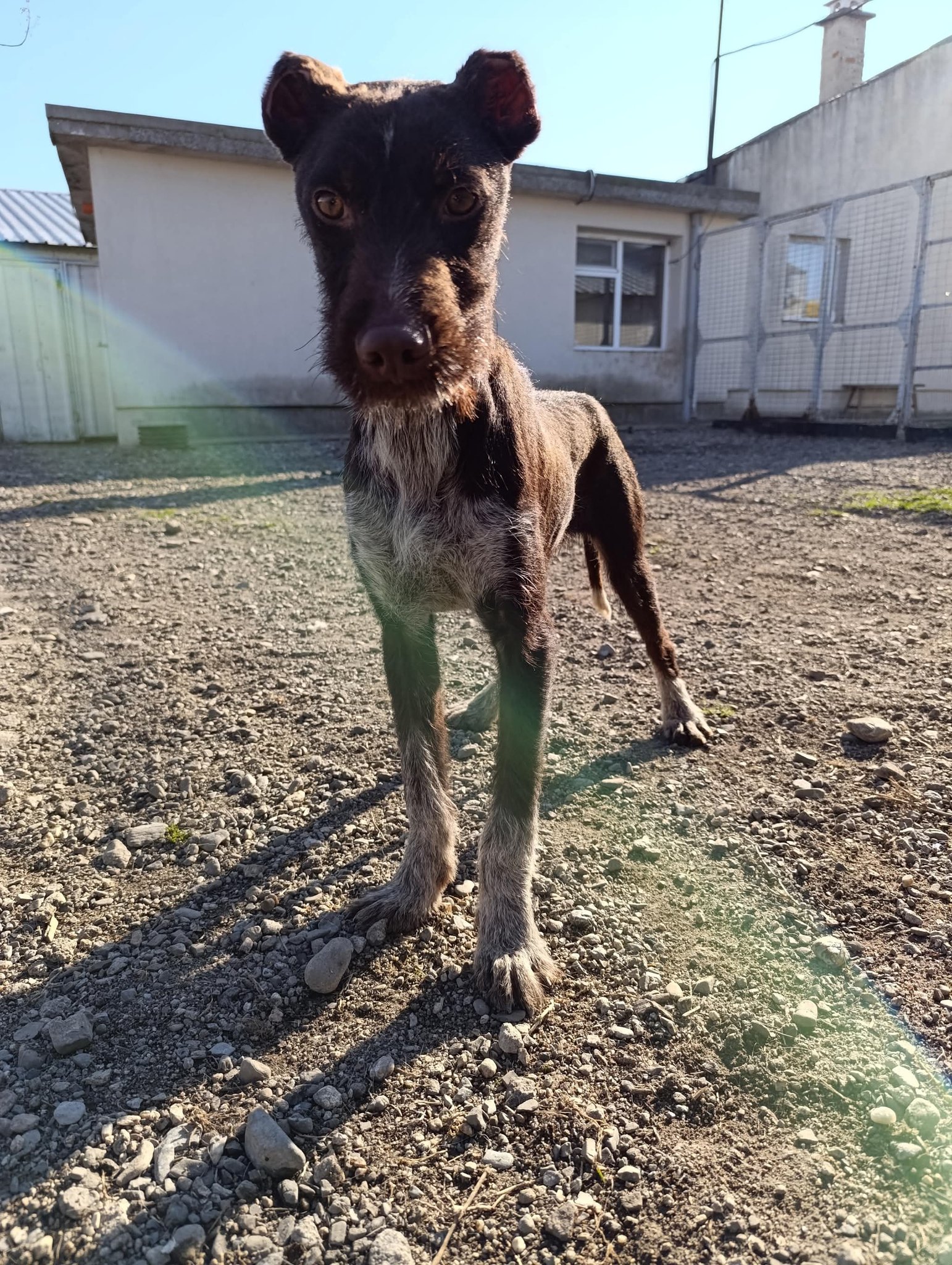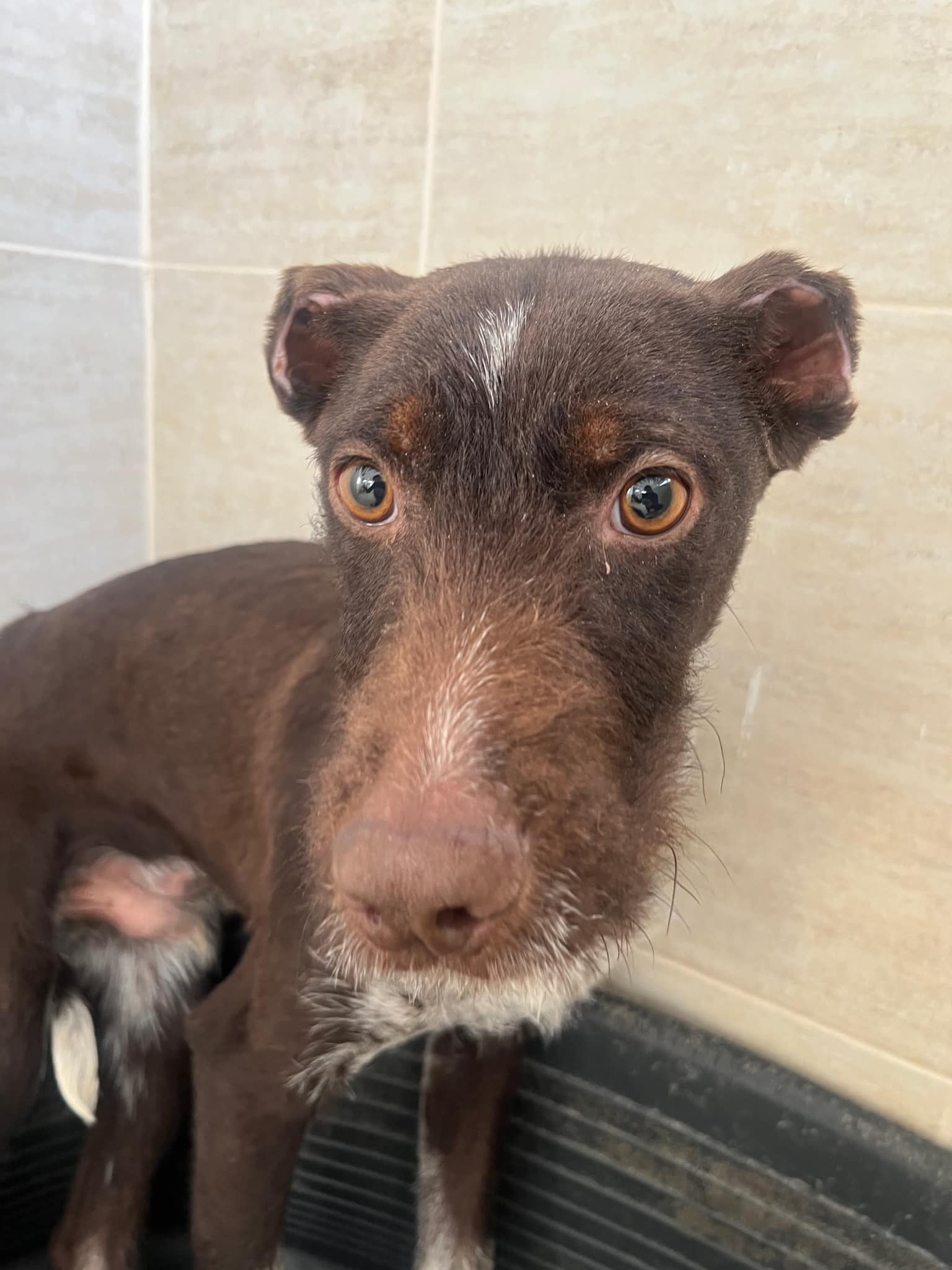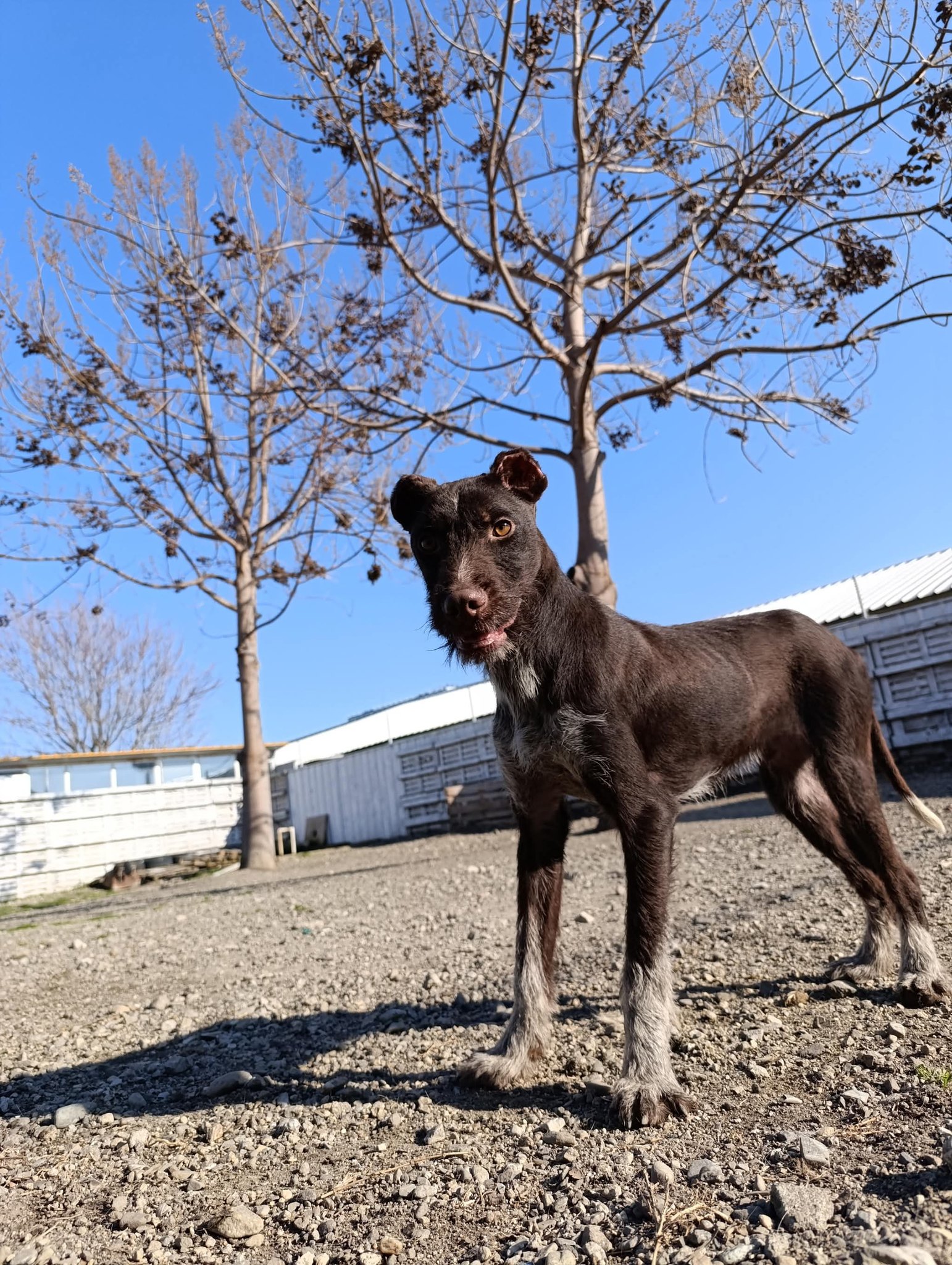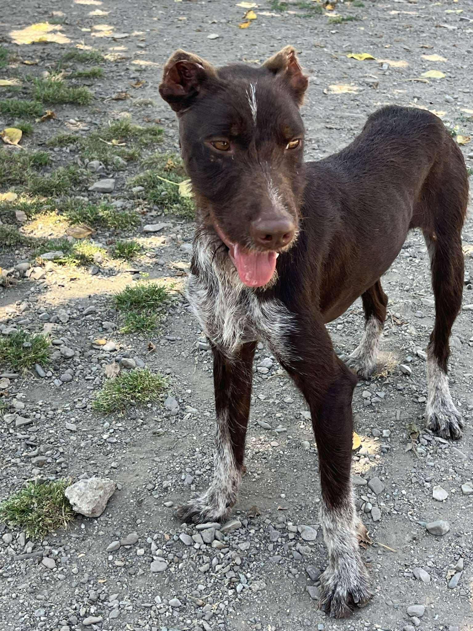Bibi hat ihn entdeckt und bat unseren Tierarzt beim Einfangen zu helfen, da er sehr ängstlich war. Sie brachten ihn dann zum Check-up in die Klinik und von da aus in unser Rescue Center von wags his tail. Zur Rasse wird vermutet, dass ein „Deutscher Drahthaar“ in im steckt.