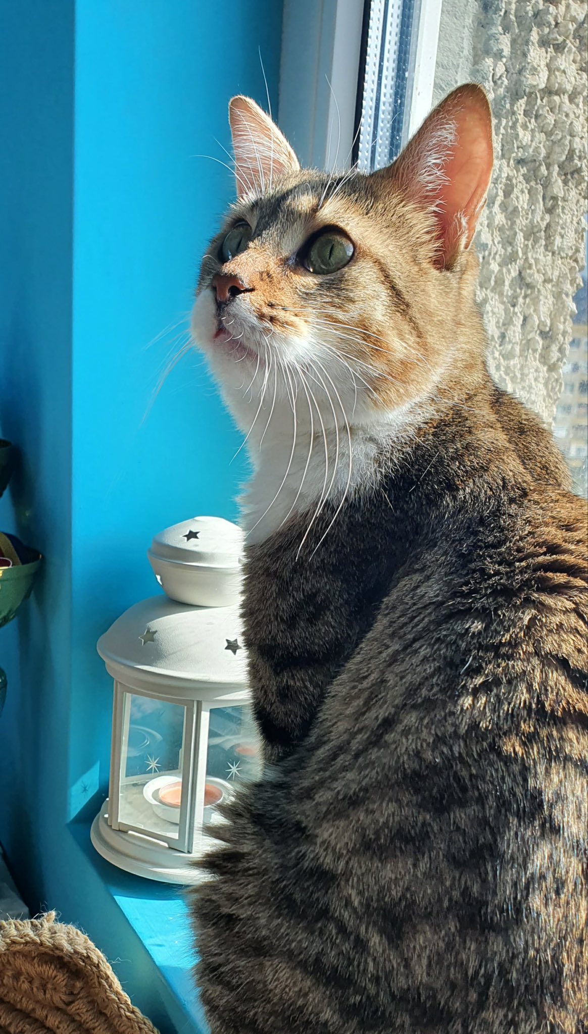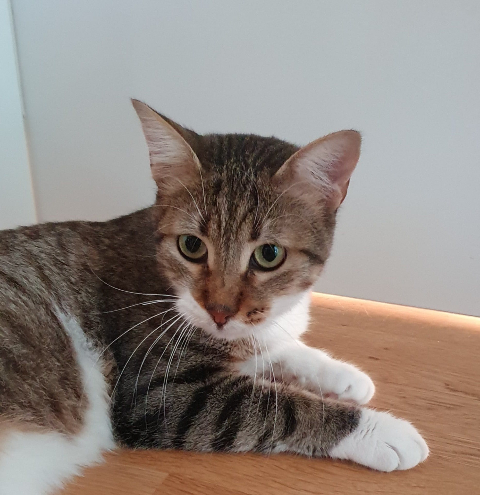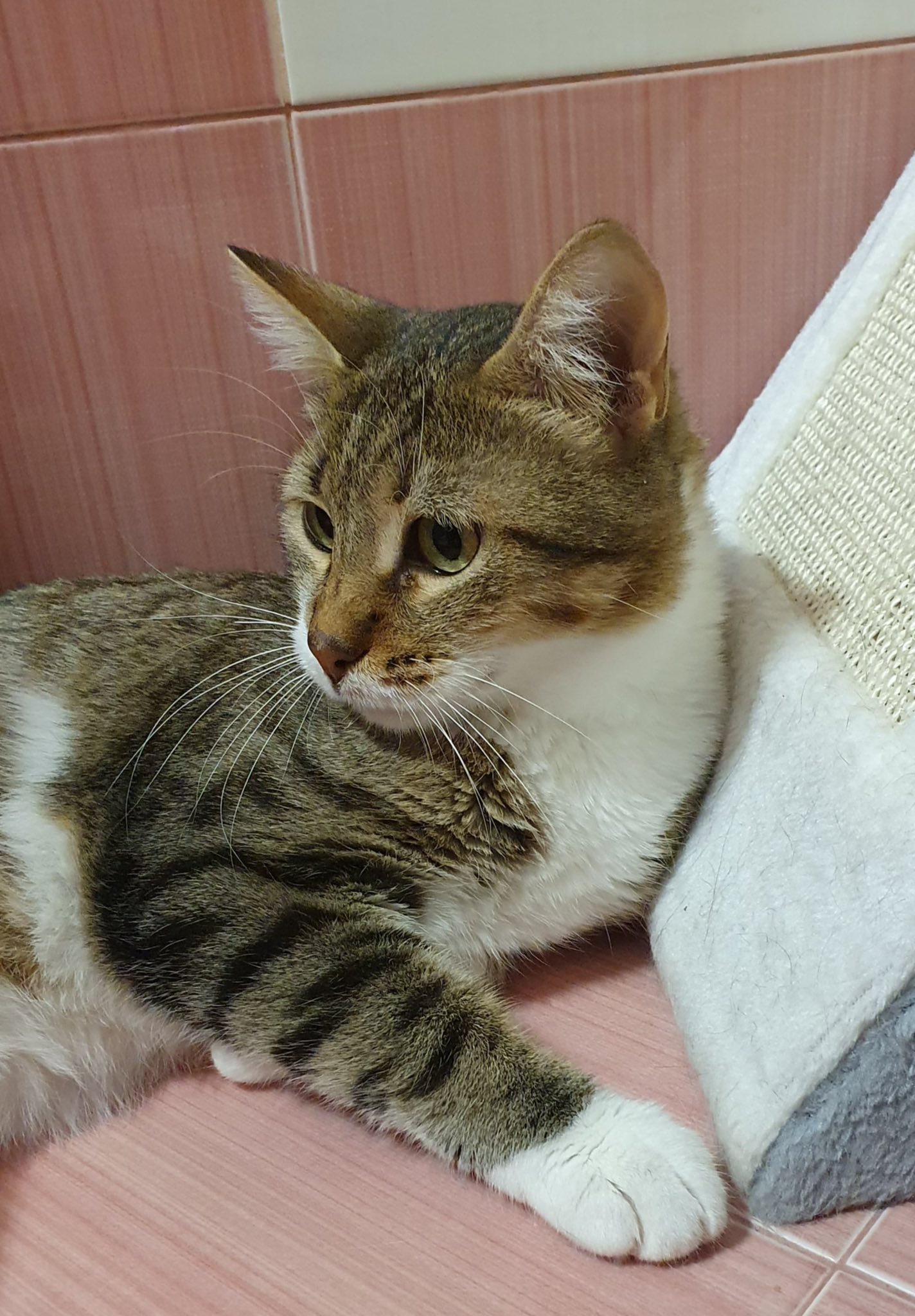 Der Kater ist ein Sohn von ihr, etwa ein Jahr und 10 Monate alt. Nicht kastriert. Ruhiger und nicht konfrontativer Charakter, mag Streicheleinheiten von Menschen, die er kennt, ist mit dem Rest vorsichtig.