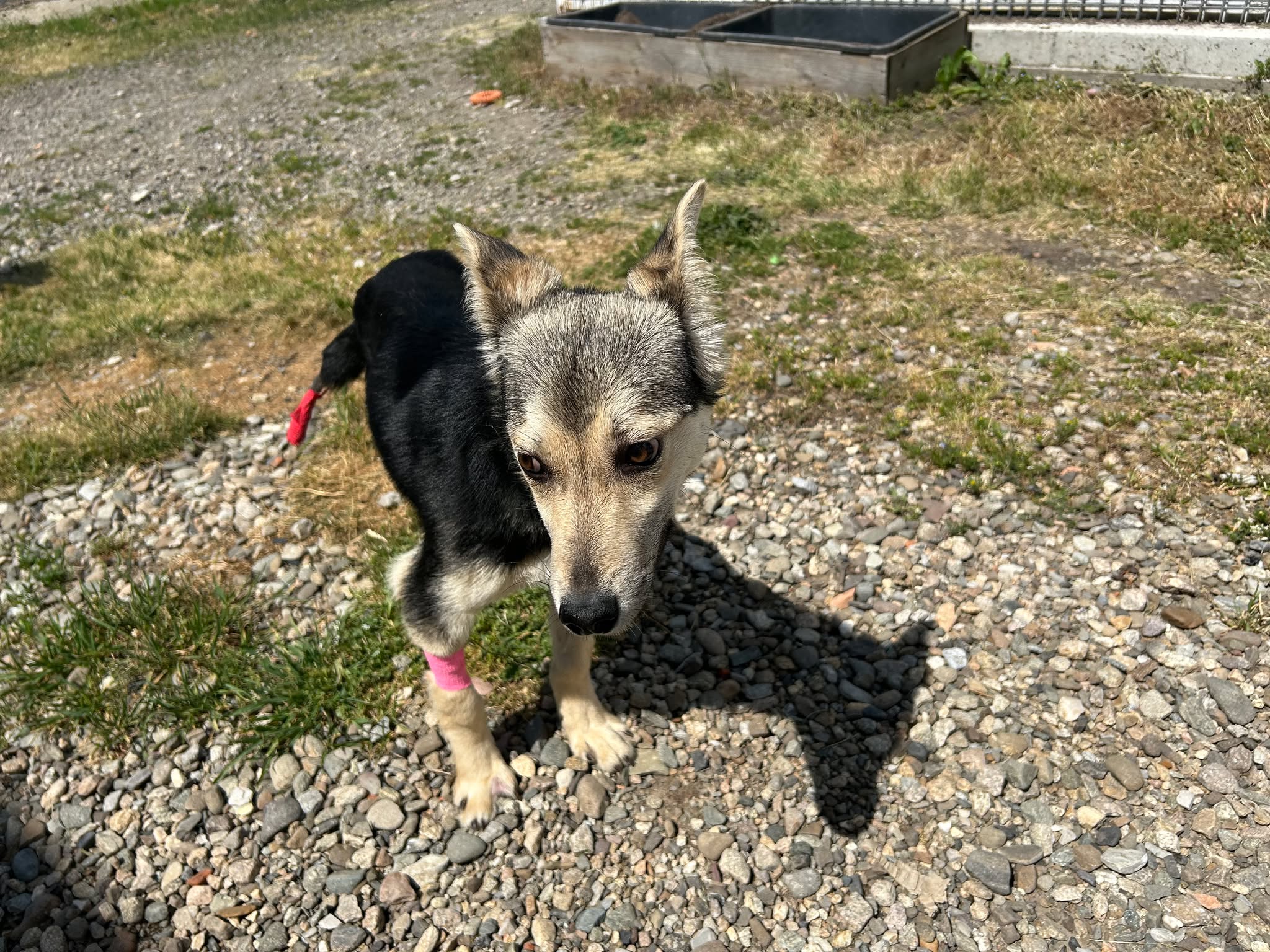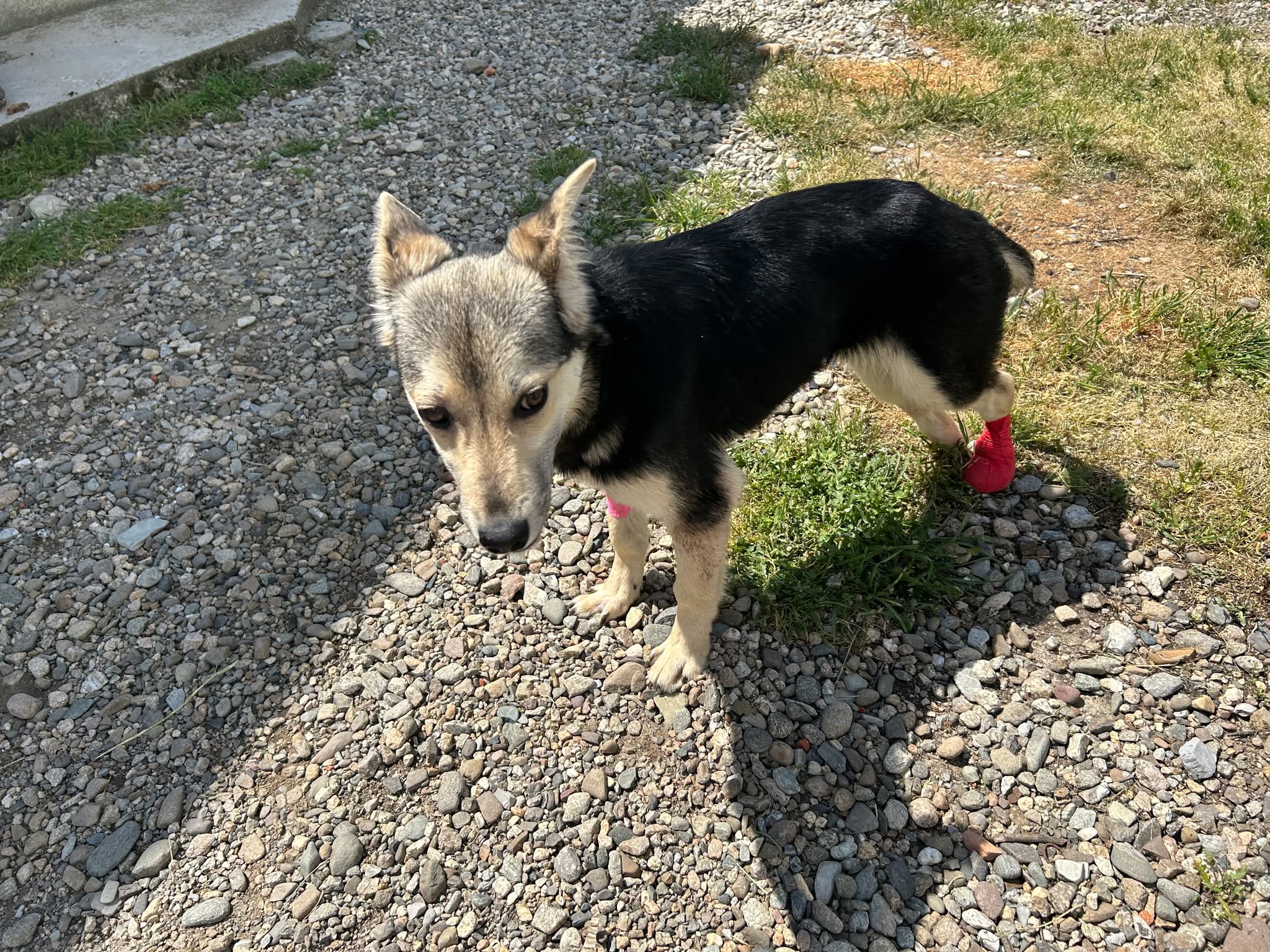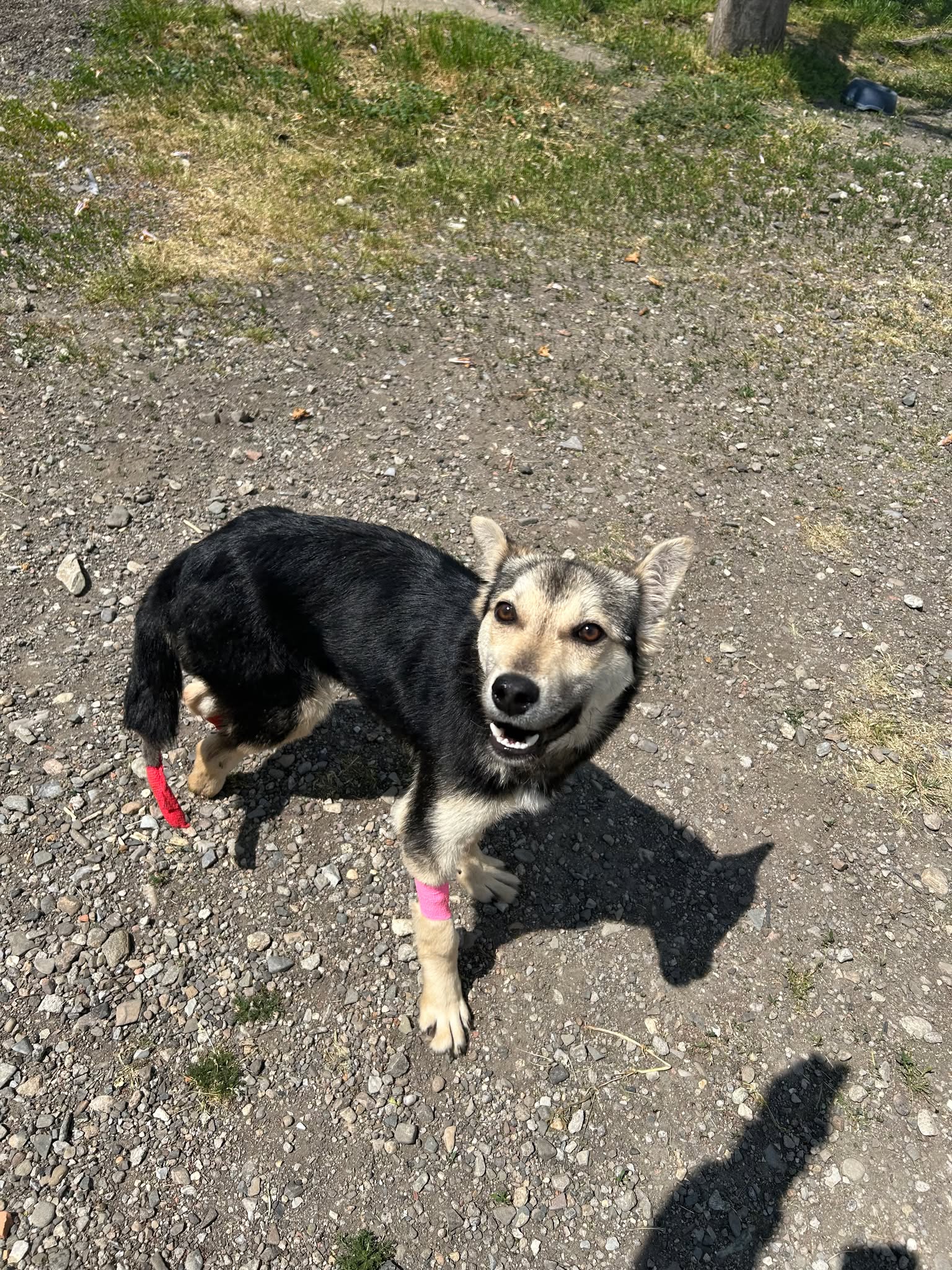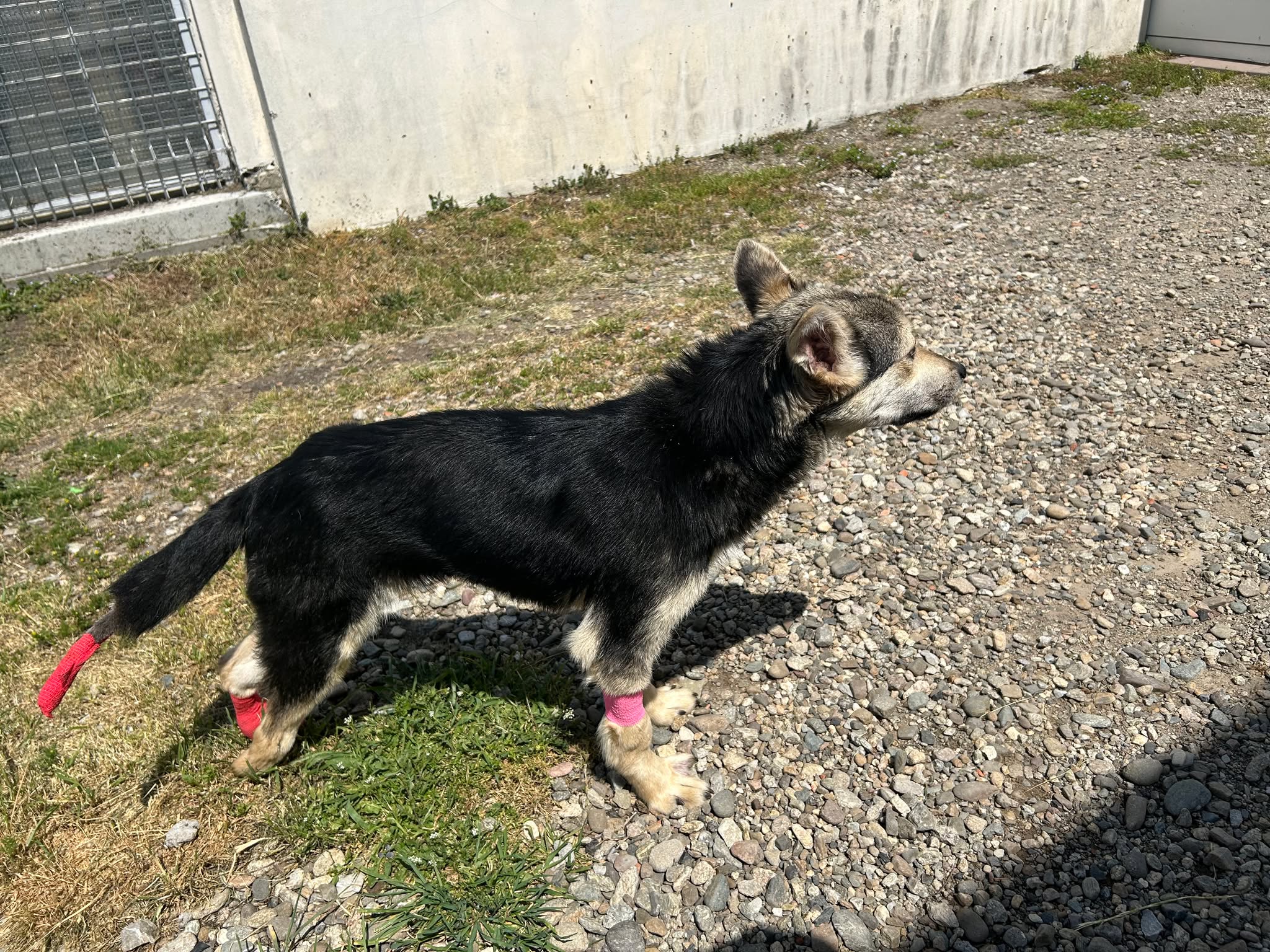 Die Ärzte kappten/versiegelten ihm ab 2/3 seiner linken Pfote die Nerven und nahmen ihm den irreparablen Stück seiner Rute ab. Mit Strahlentherapie, Akupunktur, Schmerzmittel und weitere benötigte Behandlungen, gepaart mit viel Fürsorge und Liebe ging es etwas aufwärts. Die Wunden verheilten und er sollte bereit sein, für einen Neuanfang. Am Montag (26.05.25) wurde dann Mango in Sofia abgeholt. Die noch nicht ganz verheilte Wunde sollte noch mit einer Wärmelampe behandelt werden. Diese wurde dann auf dem “Nachhauseweg” in den Shelter noch eingekauft. Dort angekommen humpelte er in seinem Quarantäne-Zimmerchen fröhlich auf die Pflegerin zu, holte sich seine Leckerchen ab und es schien überstanden.😅 Doch das Glück 🍀 war nur von kurzer Dauer. Sobald er am Abend allein gelassen wurde, hörte man wieder diesen Schmerzensschrei der Verzweiflung 😔 Gott sei Dank war unsere Pflegerin Bibi noch vor Ort. Und wieder war alles voller Blut. Trotz Trichter (!) und Verband (!), hatte Mango es geschafft an seine Pfote zu kommen und diese wieder zu zerfetzen. Die ganz schlimmen Bilder können wir niemanden zumuten werden von uns nicht gepostet. Bibi hat geistesgegenwärtig, sofort die Pfote desinfiziert und ein neues Verband drum gemacht. Schließlich ihn ins Auto gepackt und am gleichen Abend zurück nach Sofia gebracht. Noch aus dem Auto heraus schickte sie uns eine Sprachnachricht. Man hörte die Verzweiflung, die Sorge und den Schock in ihrer Stimme….. Nun ist Mango wieder in Sofia. Er wurde sofort behandelt, bekam Schmerzstiller, die Pfote wurde neu bandagiert und es stehen weitere Tests aus. Wir wissen zu diesem Zeitpunkt nicht, wie es weitergehen wird. Fakt ist: Er kann erstmal nicht im Shelter sein. Und er braucht medizinische Versorgung. Die Kosten bis vor dem erneuten Einliefern in Sofia beliefen sich auf ca. 1200€ – was jetzt noch folgt, wissen wir nicht. Jeder Tag in der Klinik kostet ca. 16 €. zzgl. der Behandlungen, Medikamente, etc. kann man mit ca. 50 € täglich rechnen. Evtl. steht eine erneute OP im Raum. Wir würden nicht fragen, hätten wir das Geld, um ihm eine Genesung in fachkundige Hände zukommen zu lassen, selbst. Doch die Welpen Flut, Futter und auch kleine medizinische Behandlungen von dem Rest der Tiere, lassen nicht viel Spielraum für so große Taten. Daher bitten wir euch, um eine Spende für Mango