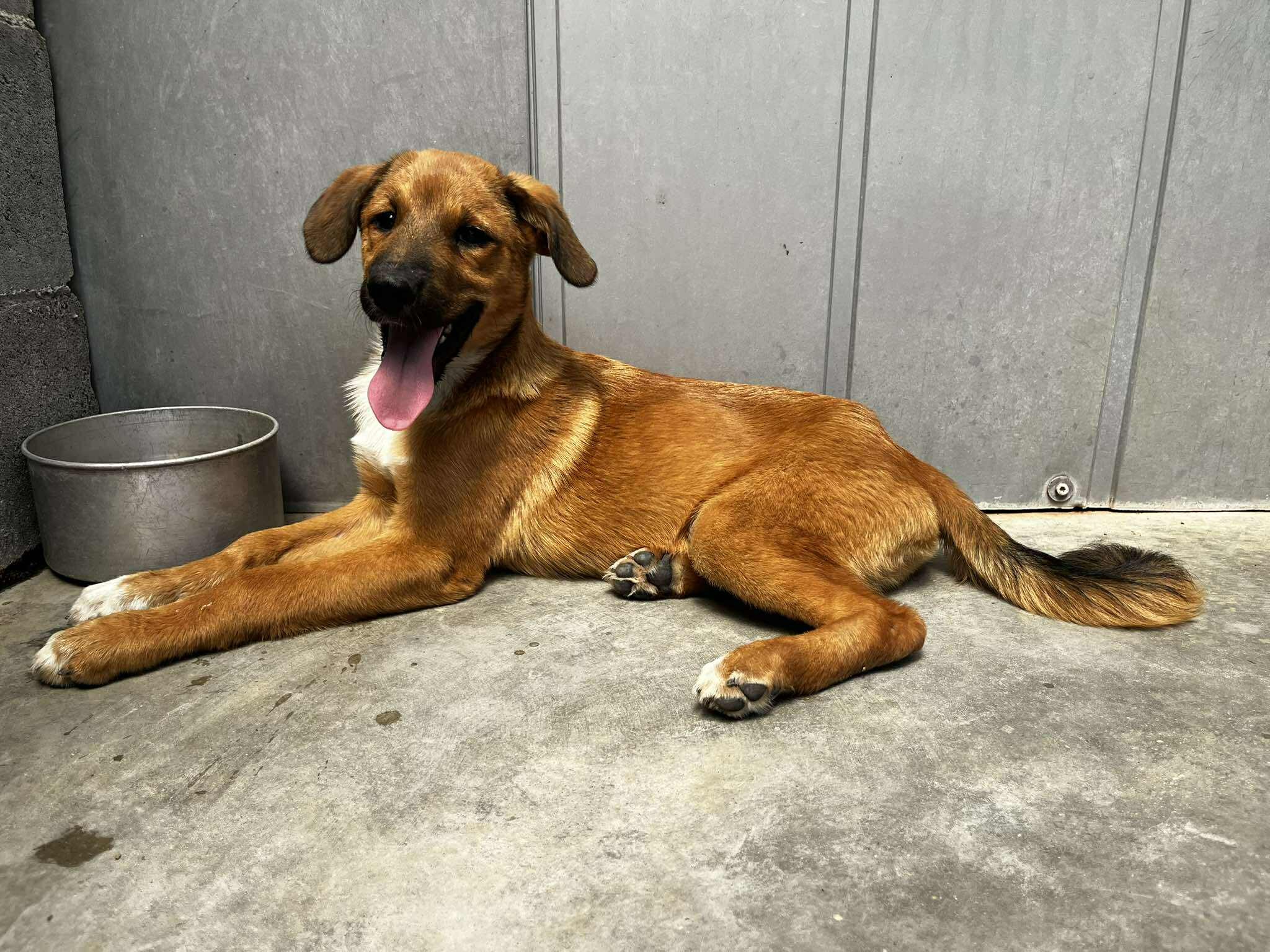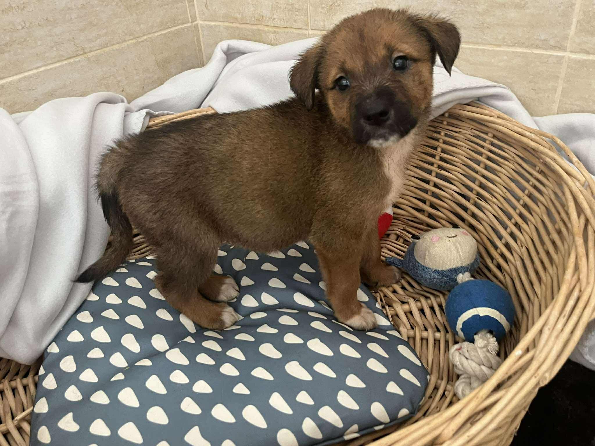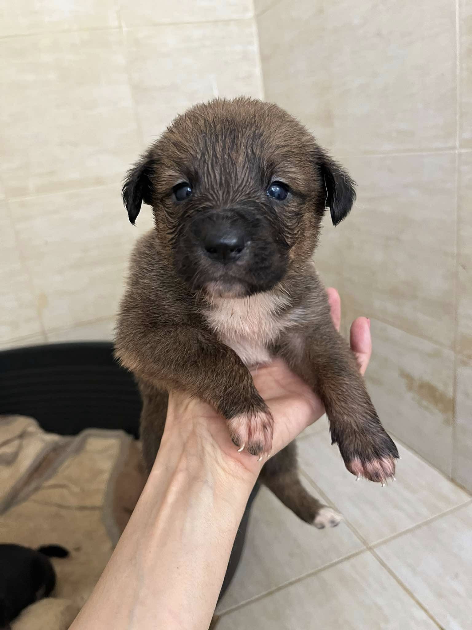 Wir haben vor kurzem eine Nachricht erhalten von einer Frau, die eine Hundemama füttert. Die werdende Mama tauchte eine Woche zuvor in diesem Stadtgebiet auf und war hochschwanger. Die Frau konnte sie aber nicht mitnehmen, weil die Großmutter die werdende Mama nicht wollte. Sie brachte 5 Babys zur Welt und danach erhielten wir die Nachricht und wurden um Hilfe gebeten.