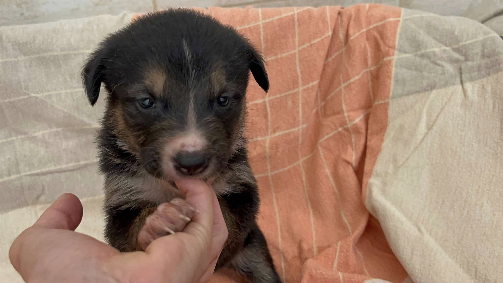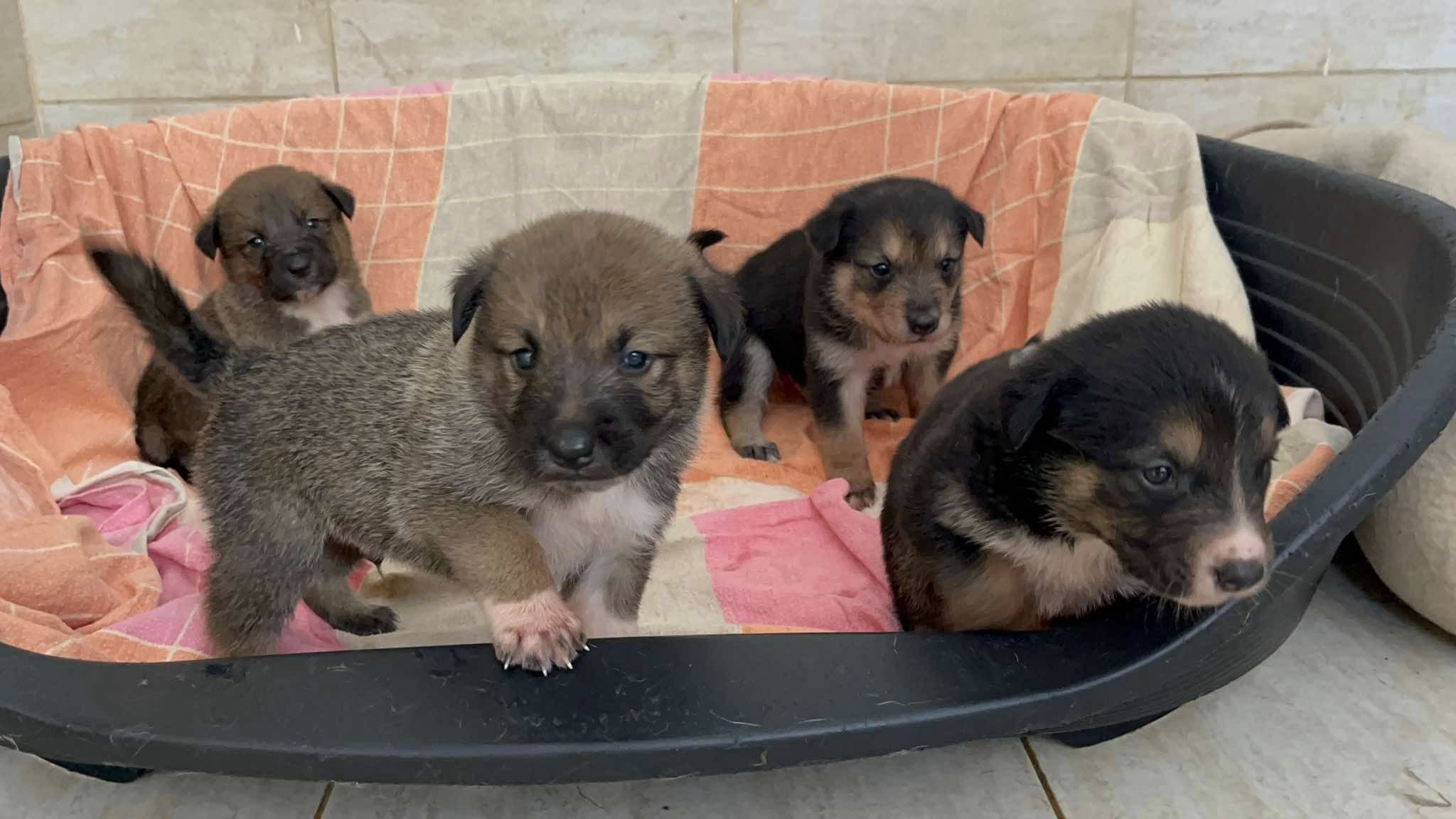 Wir haben vor kurzem eine Nachricht erhalten von einer Frau, die eine Hundemama füttert. Die werdende Mama tauchte eine Woche zuvor in diesem Stadtgebiet auf und war hochschwanger. Die Frau konnte sie aber nicht mitnehmen, weil die Großmutter die werdende Mama nicht wollte. Sie brachte 5 Babys zur Welt und danach erhielten wir die Nachricht und wurden um Hilfe gebeten.