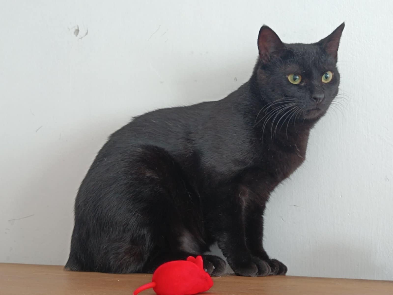 Vor etwa einem Monat kam sie zufällig erneut an dem Café vorbei – und war überrascht, den kleinen Kater wieder auf dem Bürgersteig zu sehen, wie er um Futter bettelte. Dieses Mal fragte sie niemanden um Erlaubnis. Sie nahm ihn einfach mit – direkt zurück zur Tierklinik. Dort wurde festgestellt, dass er am Calicivirus litt, weshalb er erneut behandelt werden musste. Bei dieser Gelegenheit wurde er auch kastriert. Heute ist er ein sehr ruhiger, sanfter und stiller Kater. Er ist nicht fordernd, anfangs etwas schüchtern, doch das legt sich schnell – spätestens wenn es ums Futter geht. Dann zeigt er eine ganze Show: Er bettelt, verhandelt, schmollt, wenn es seiner Meinung nach zu lange dauert, bis der Napf endlich auf dem Boden steht.