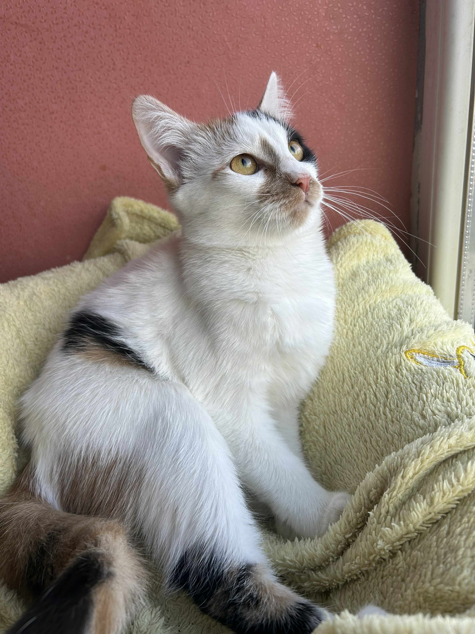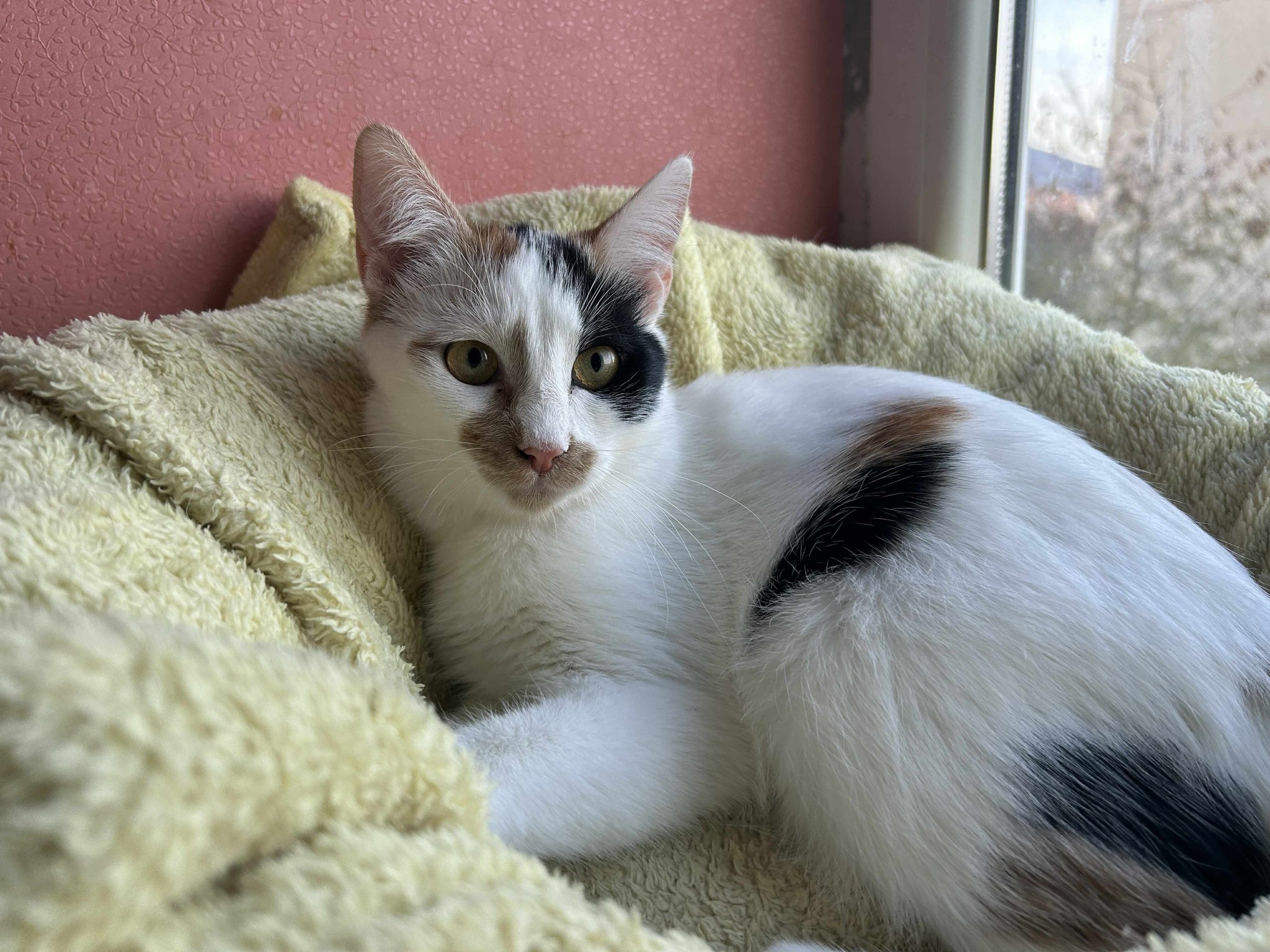 Eine dreifarbige Katze, die in ihrem Fell ein bisschen mehr Weiß hat als normalerweise bei Trikolor Katzen. Amelie mag Kinder und kann problemlos in einen Haushalt mit Kindern adoptiert werden. Aktuell lebt sie auf einer Pflegestelle und kann in reine Wohnungen mit Balkon vermittelt werden.