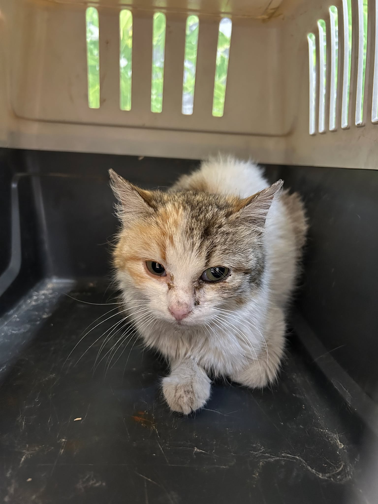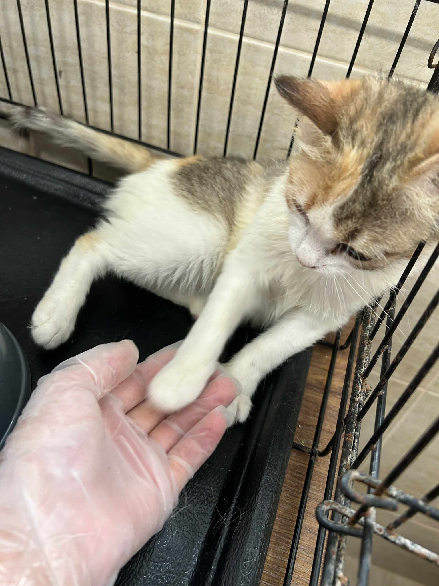 Dieses zarte Kätzchen wurde etwa am 1. Juni 2024 geboren und wiegt nur 1,1 kg. Auf den ersten Blick könnte man meinen, sie sei ein erst 2–3 Monate altes Jungtier – dabei ist sie bereits erwachsen. Trotz ihres zerbrechlichen Aussehens trägt sie eine schwere Last: Der FIV-Test war leider positiv. Vermutlich wurde sie bereits mit dem Virus geboren. Einige Zeit streunte Sie um unser Tierheim herum. Billiana versuchte sie einzufangen. Nach viel Geduld und behutsamen Annäherungsversuchen konnte Billiana Sie nun endlich sichern. Jetzt ist sie in der Klinik, wo sie medizinisch versorgt wird und wir alles tun, um ihre Gesundheit zu stabilisieren. Sie ist sehr schwach, erschöpft und braucht viel Ruhe – aber sie kämpft. Wir hoffen auf das Beste für sie – und vielleicht sogar auf ein liebevolles Zuhause, das ihr trotz ihrer Diagnose ein schönes Leben schenkt.
