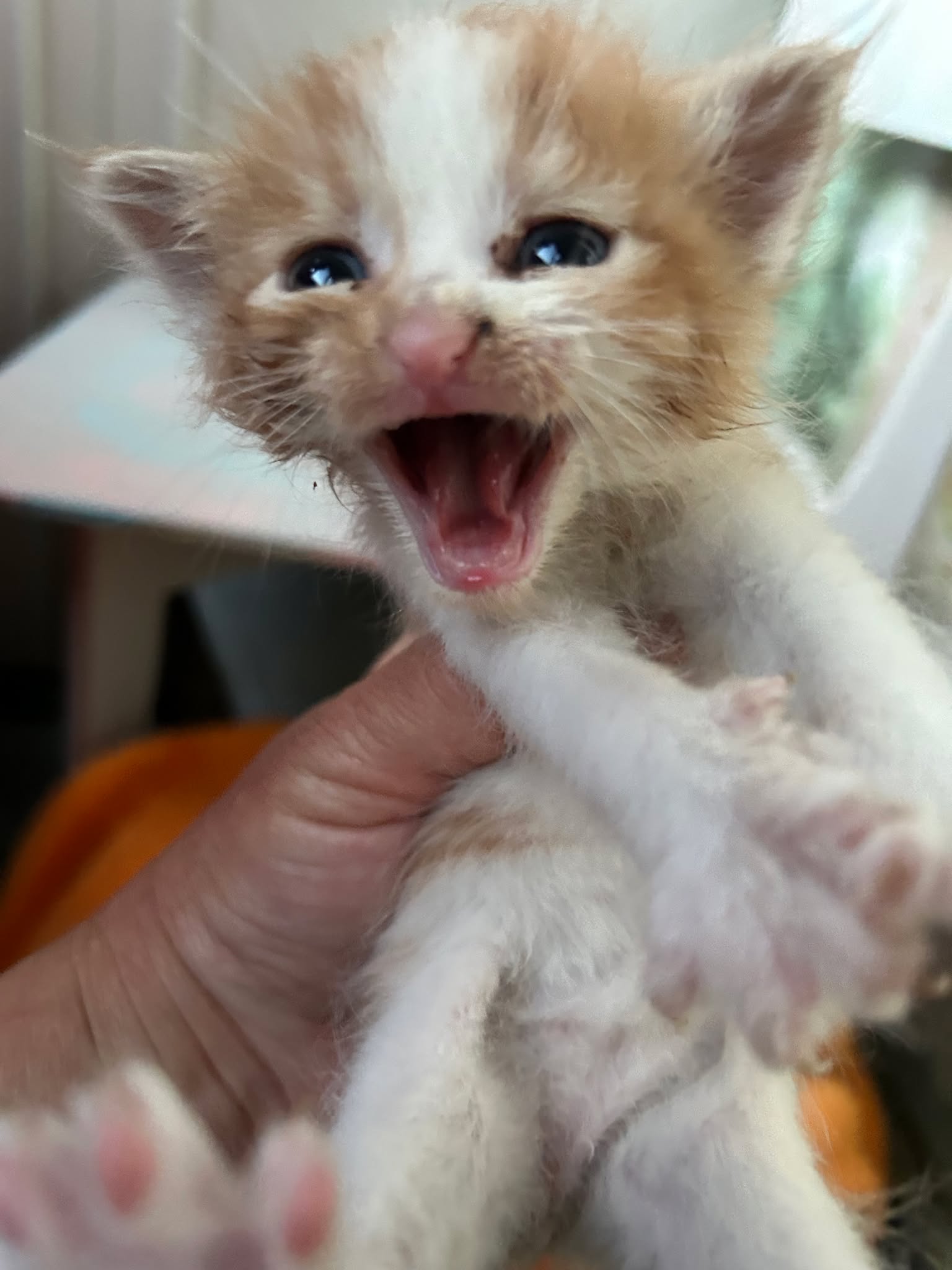 Auf einem verlassenen Grundstück fand sie einen großen Karton. In dem Karton befanden sich 5 kleine Kitten. Alle ca. 3 Wochen alt. Sie wurden herzlos dort ausgesetzt und sich selbst überlassen. Die Kleinen können schon Baby- Pate essen, brauchen aber nach wie vor Milch. Billiana brachte die kleinen zu unserer Kittenflüsterin Nikolina.