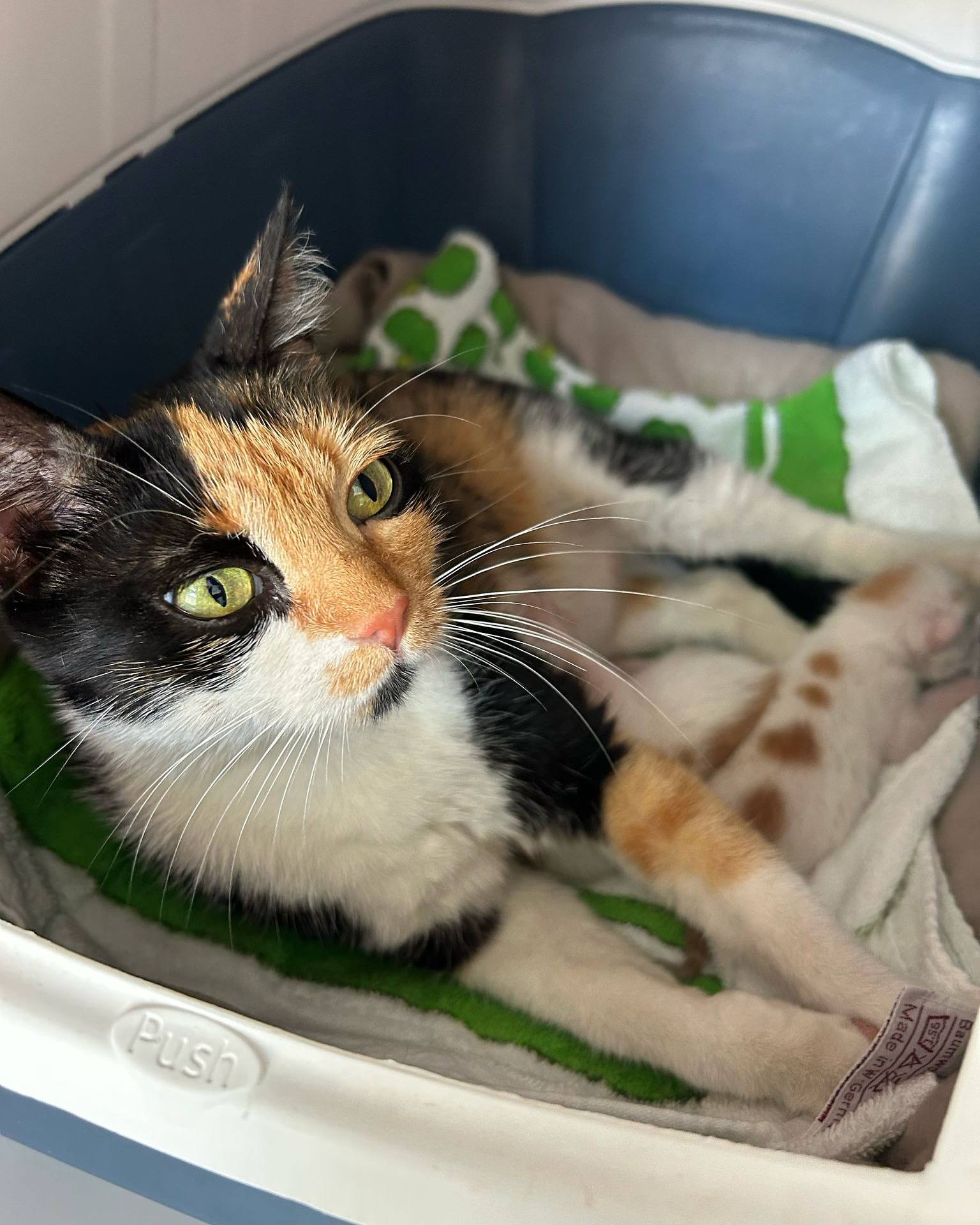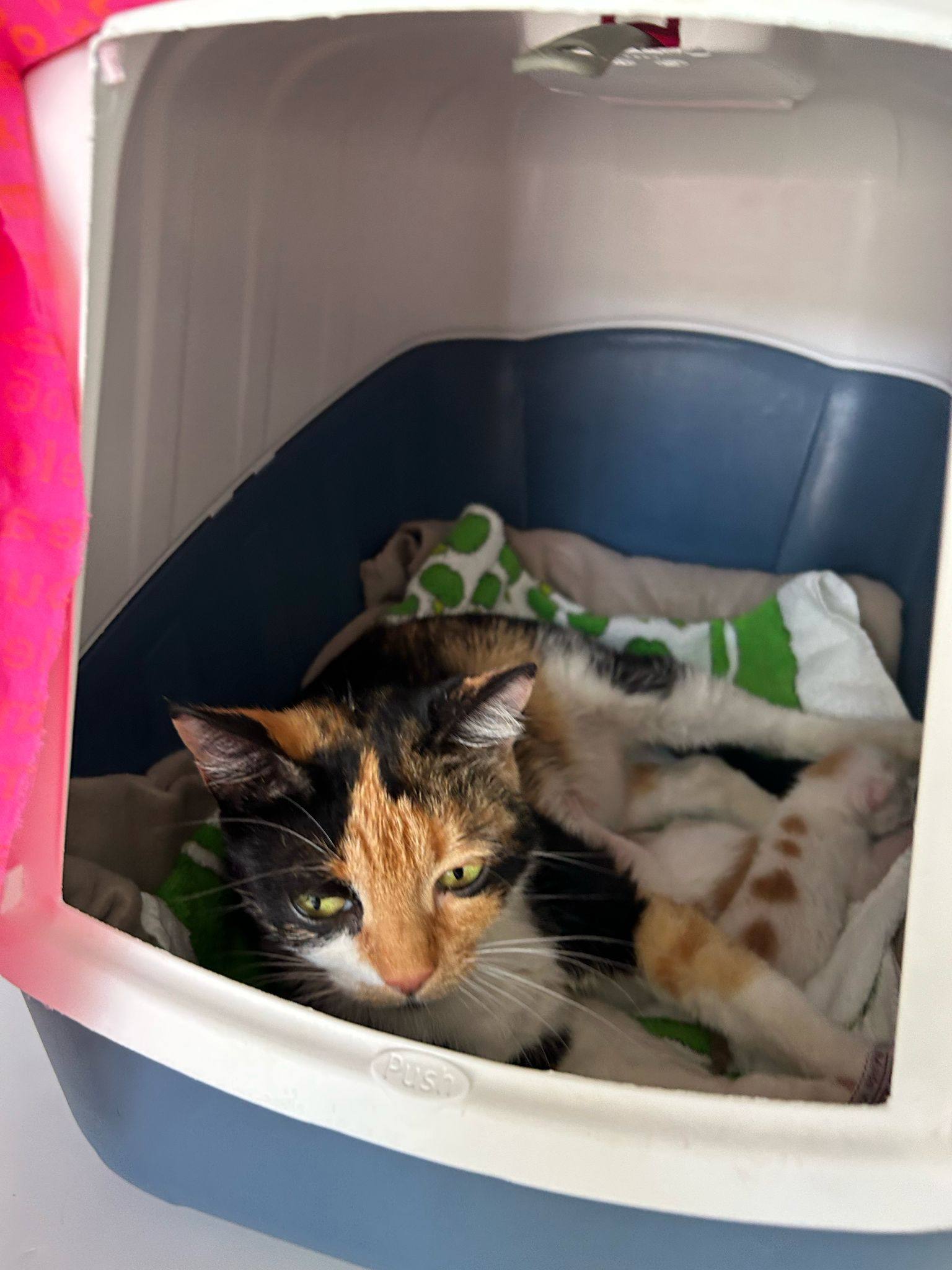 Menschen, gebildet und intelligent… Oft sind sie einfach herz- und empathielos Dies ist ein kleines Kätzchen, das von den Mitarbeitern der Apotheke gefüttert wurde. Sie haben sie weder kastriert noch entwurmt, noch nach einem Zuhause gesucht. Sie haben einfach nur heimlich Futter gebracht. Das Kätzchen vertraut ihnen und bringt ihre Babys dort zur Welt – vor der Tür, in einer Pappschachtel – in der Hoffnung und im Glauben, dass sie dort geschützt sind. Doch viele Menschen Besuchen täglich diese Apotheke und gehen vorbei. Die Apotheke liegt direkt auf der Straße. Die Leute aus der Apotheke, haben sie und ihre Babys einfach zurückgelassen – völlig schutzlos, vor der Tür, ohne Hilfe. Einer unserer Helfer machte Besorgungen in eben dieser Apotheke und erkundigte sich nach der Katze. Sie wichen der Frage aus. In derselben Nacht haben wir sie geholt.