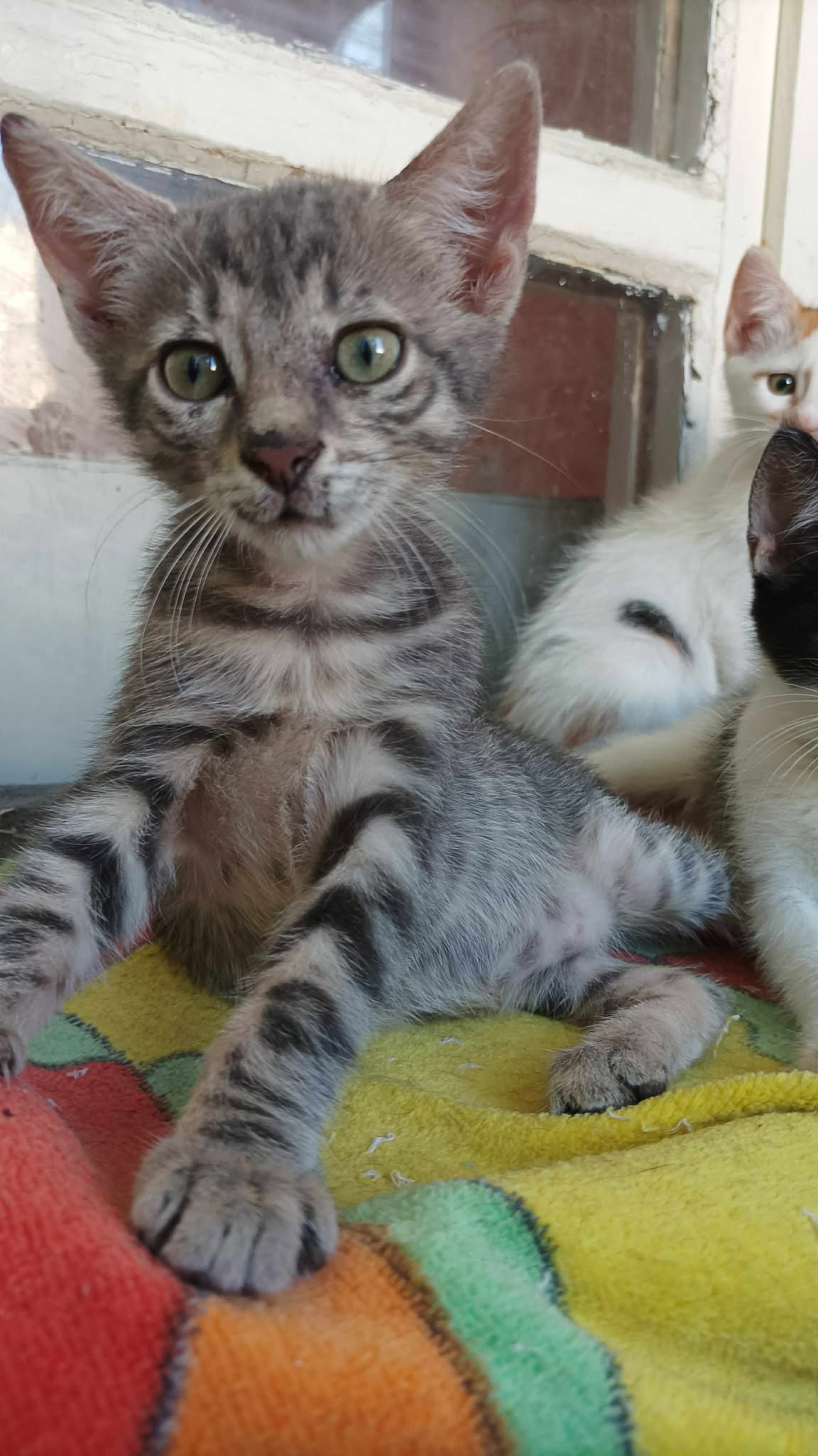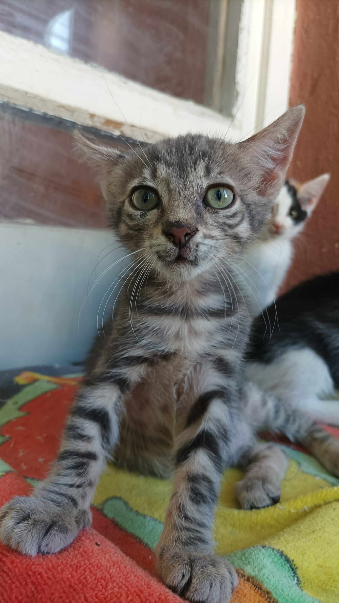 Vor ca. 2 Monaten sahen unsere Engel vor Ort in der Facebookgruppe einen Aufruf, dass 2 Kitten in einer Pappkiste neben einem Müllcontainer abgestellt wurden. Das Posting war leider schon 2 Tage alt. Unsere Engel vor Ort gingen trotzdem nachsehen und wurden fündig. ES hatte sich niemand der armen Seelen erbarmt und sie saßen immer noch in der Box. Die beiden (Bruder + Schwester) wurden gesichert und wurden liebevoll gepäppelt und gepflegt. Sie waren erst 2 Wochen alt. Nun sind sie groß genug für ein eigenes Album.