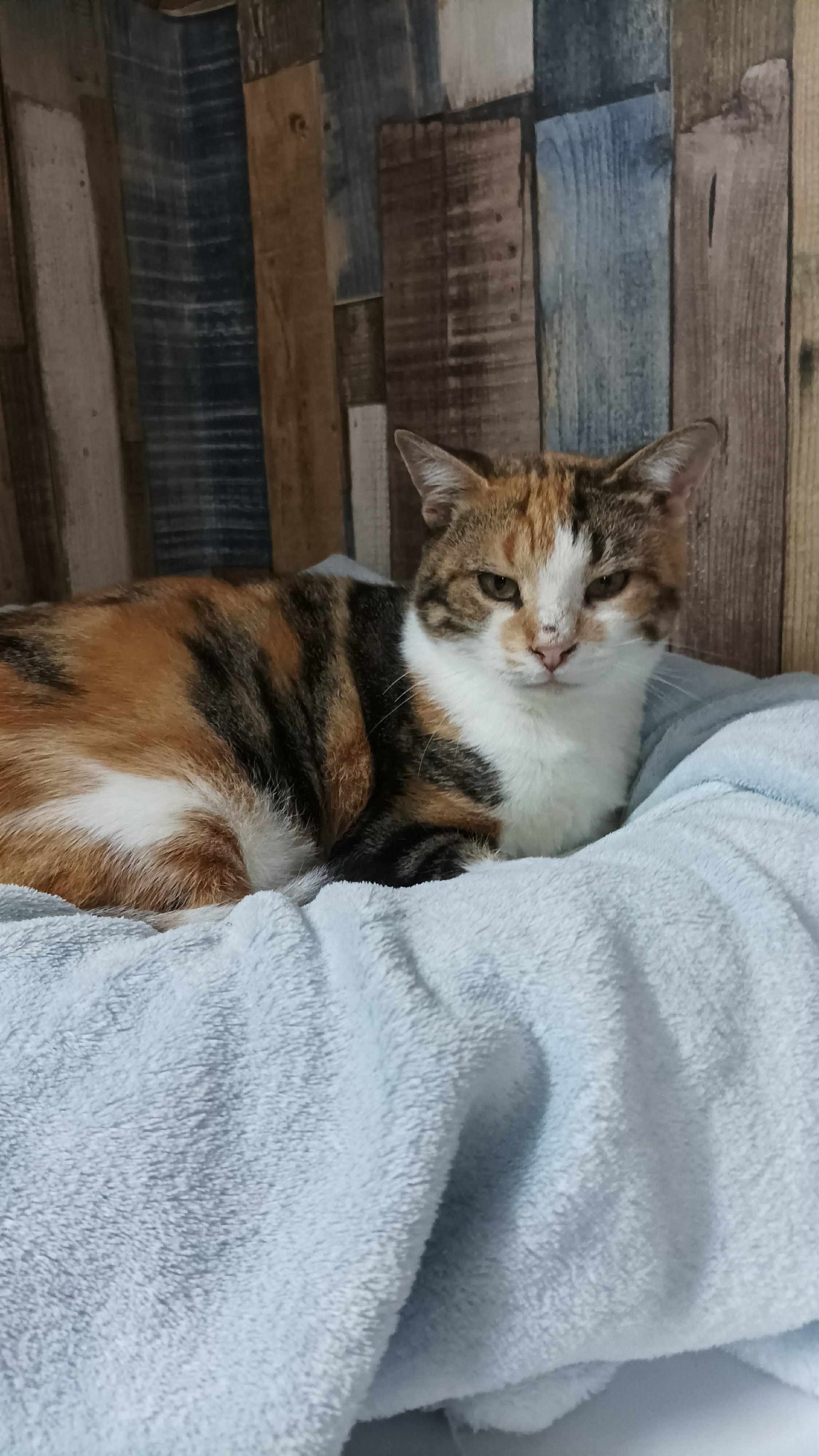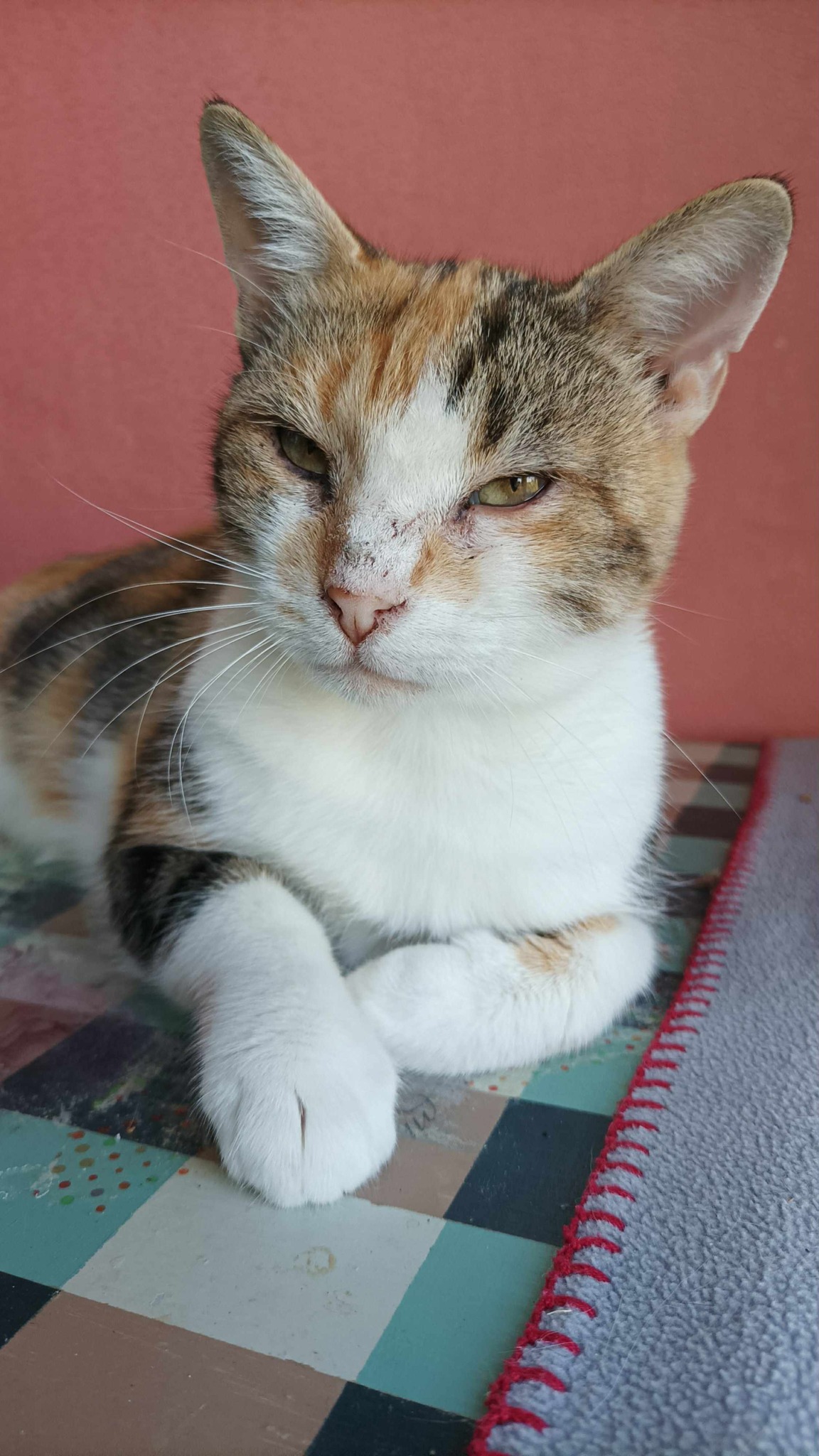 Auch unsere Cvetanka hat 3 Neuzugänge. Sie füttert an verschiedenen Futterstellen im ganzen Ort hungrige Straßenkatzen. Bei einer dieser Futterstellen viel ihr eine Mutter mit 3 Kitten auf. Die Mama war nur noch Hut und Knochen. Die Kitten waren beide schon groß genug um normales Futter zu sich zu nehmen. Cveti fütterte die 4 und stellte fest, dass die Mama sehr zutraulich und verschmust war. Katzen die auf der Straße geboren und aufgewachsen sind, sind in der Regel nicht zutraulich zum Menschen. Also gibt es nur eine Schlußfolgerung. Die Mama muss mal ein Zuhause gehabt haben. Kurzerhand sicherte die Cvetanka die kleine Familie. Leider überlebte eines der Kitten nicht. Nun haben sich alle soweit erholt und sind nun bereit für ein eigenes Album. Beginnen wir mit der Mama.