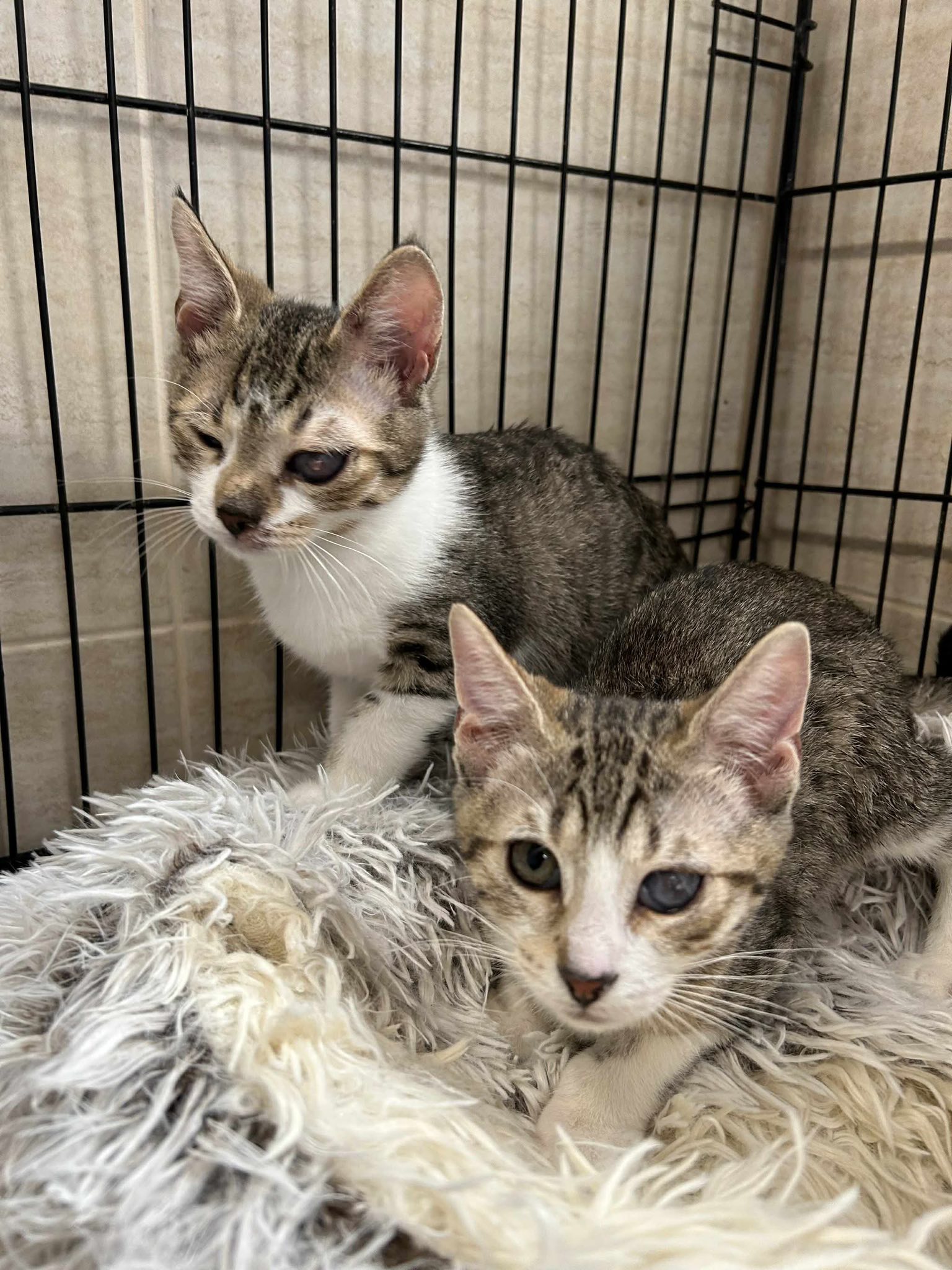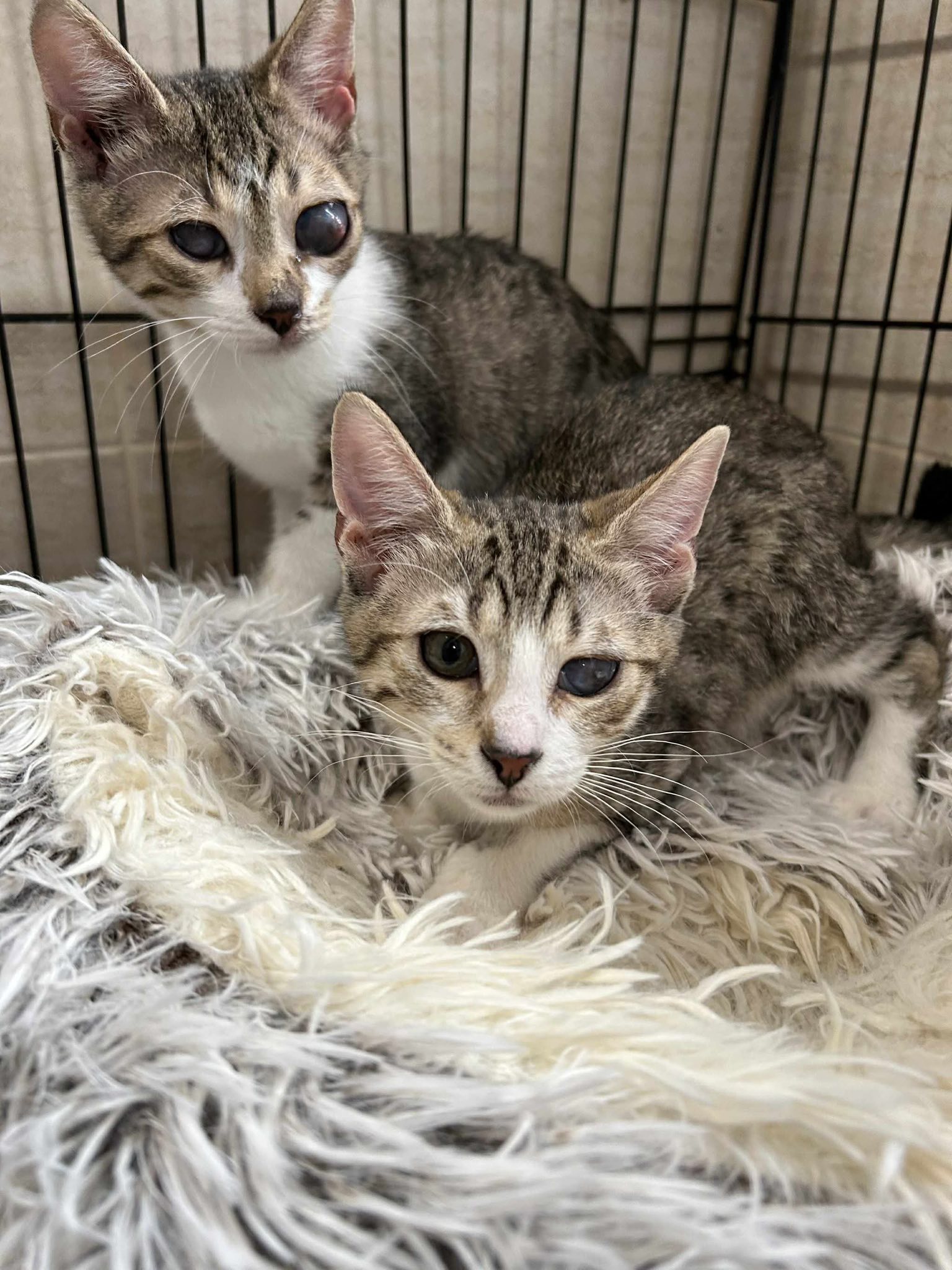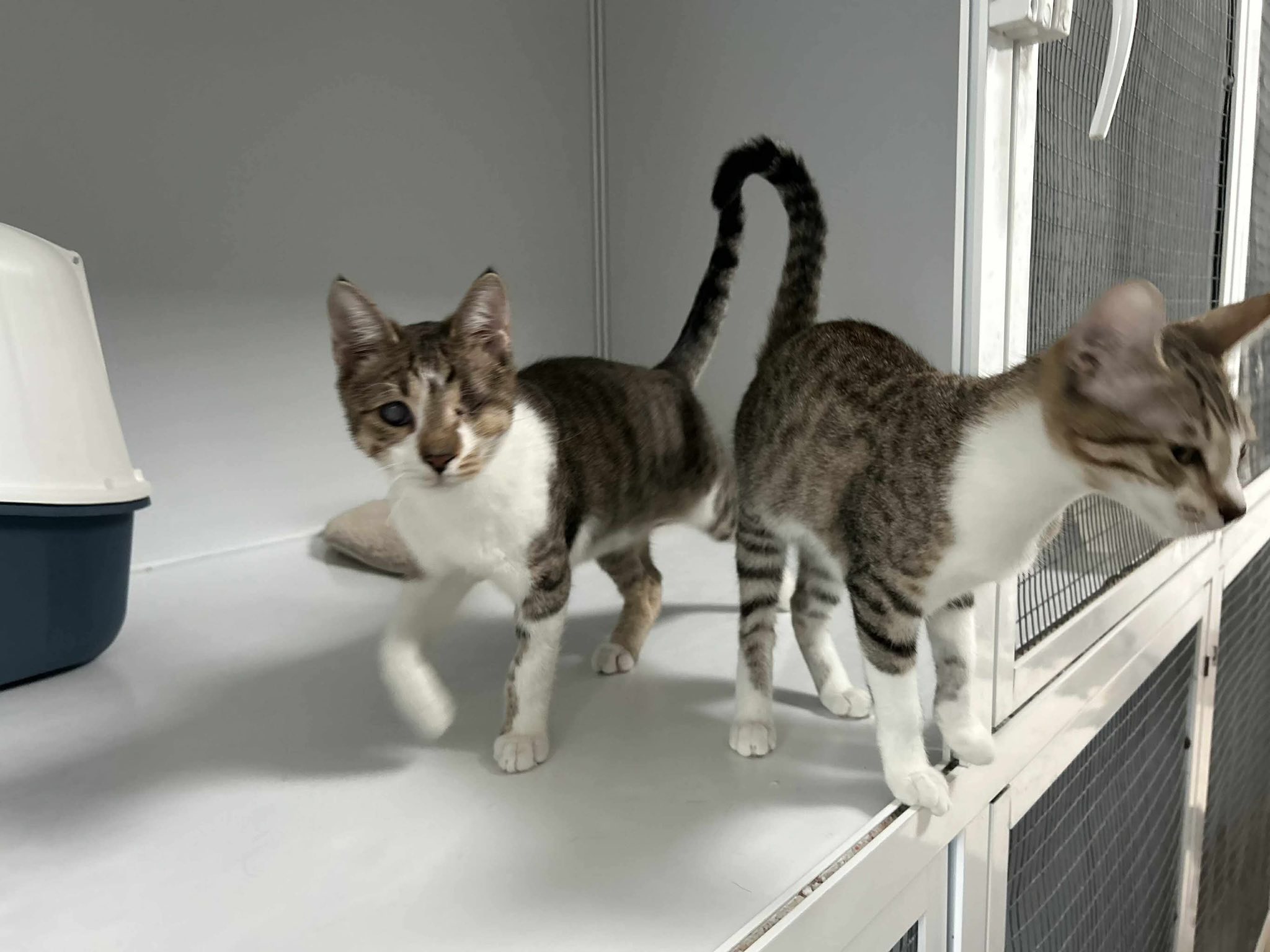 Beiden Geschwistern geht es den Umständen entsprechend gut. Sie suchen ein gemeinsames zuhause. Freigang ist aufgrund des Handicaps nicht möglich.