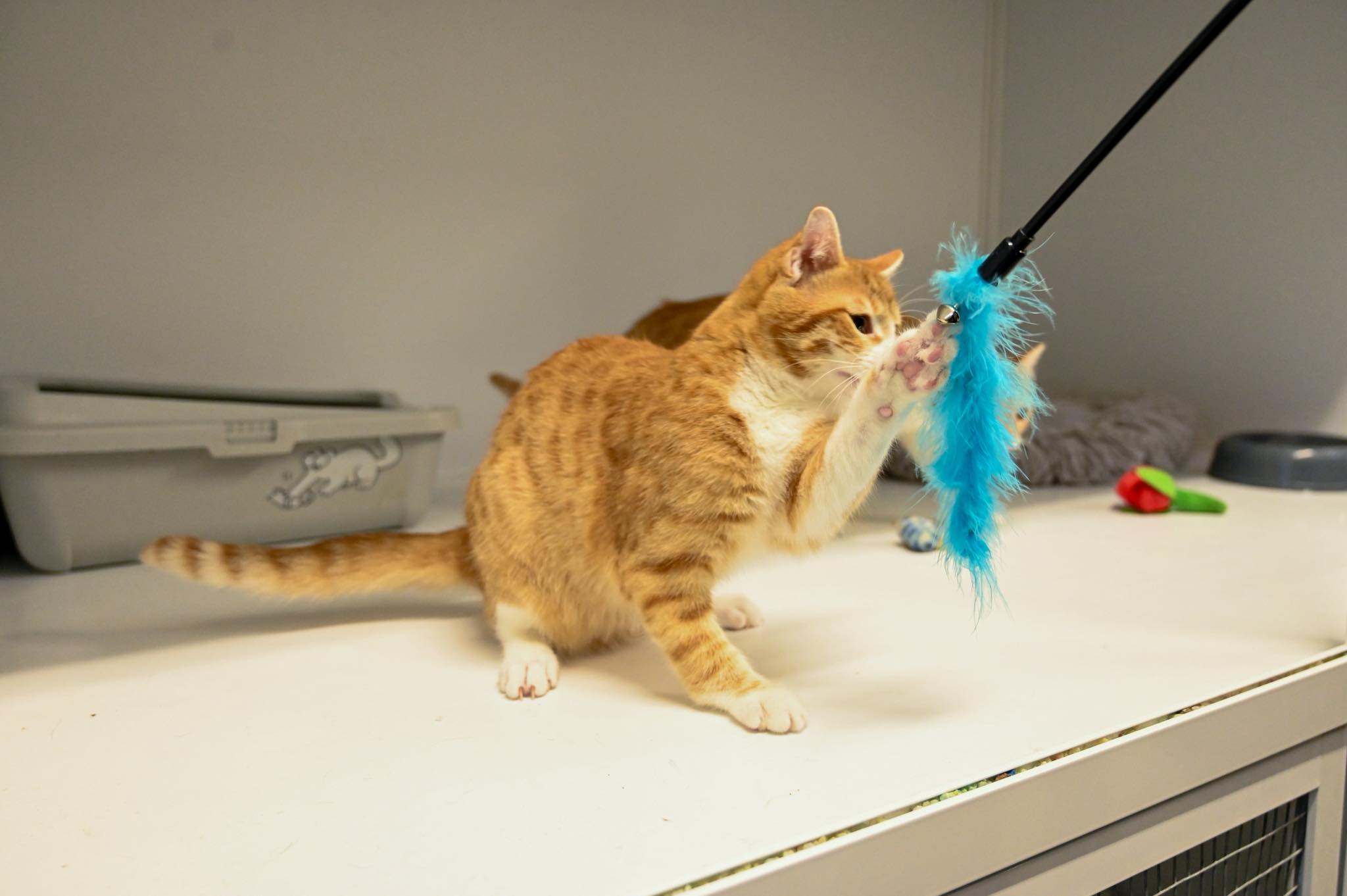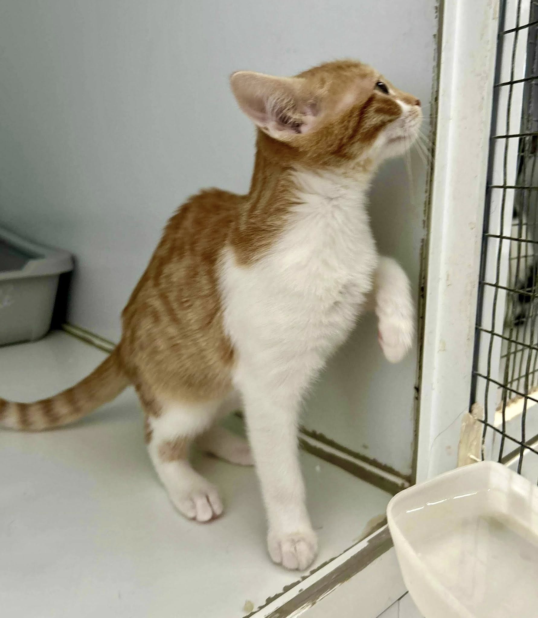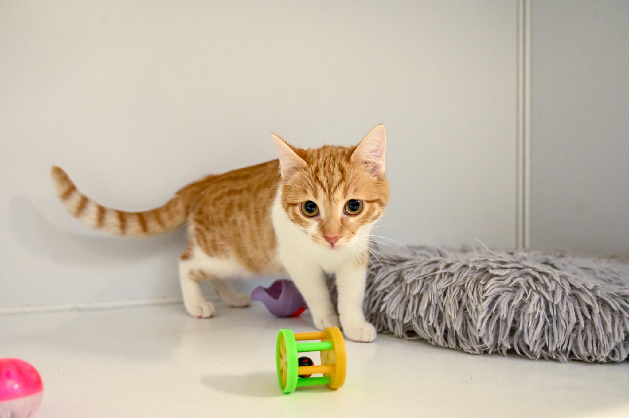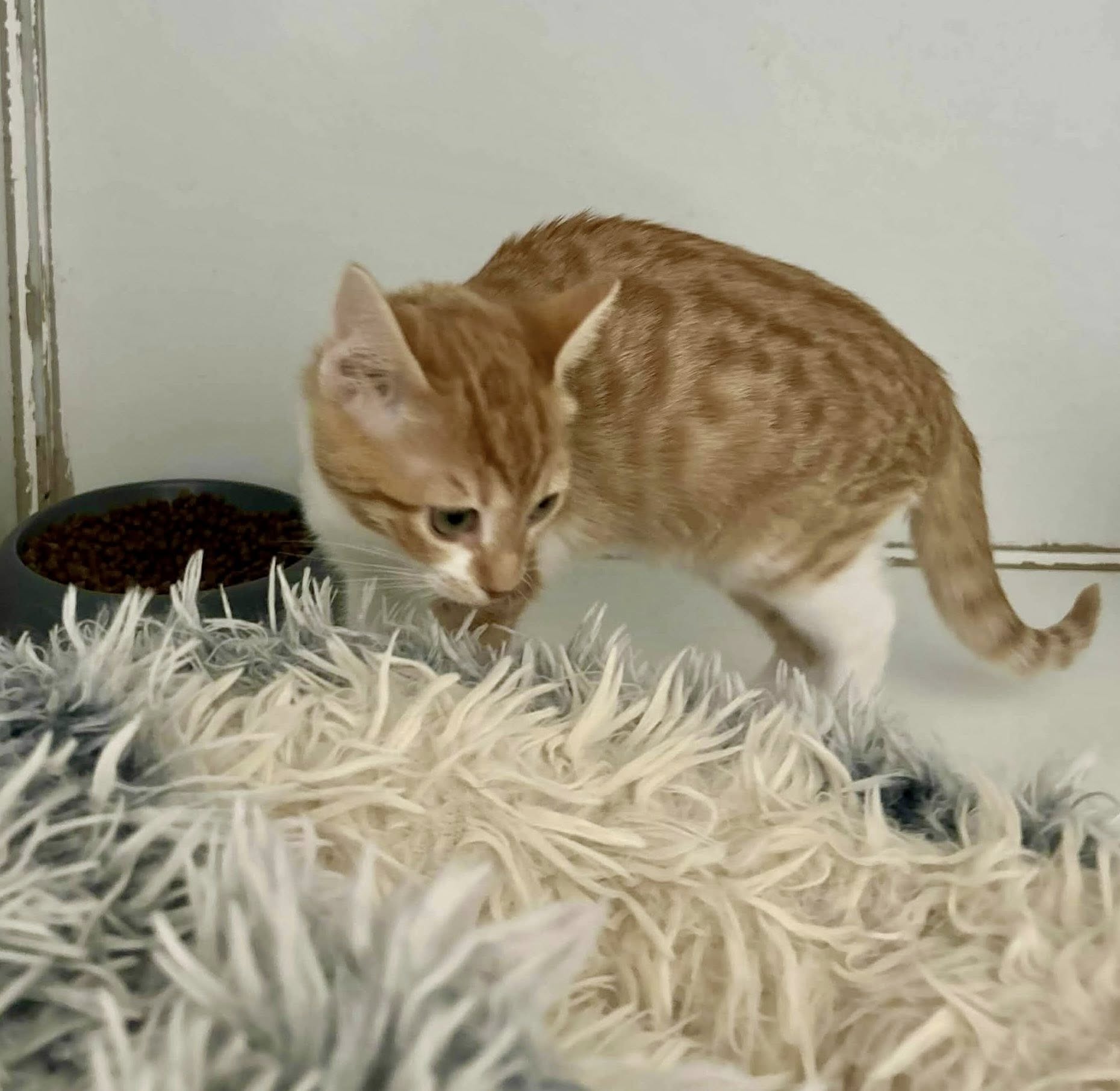 Orange war beim Tierarzt zum medizinischen Check wegen seiner Pfote. Die gute Nachricht: Er muss die Bandage nicht mehr tragen. Doch wenn er groß genug ist, steht eine wichtige Operation bevor – seine Pfote muss amputiert werden. Der Grund ist, dass in seinem Pötchen kein Knochen vorhanden ist, und der Tierarzt deshalb dringend dazu rät, es zu entfernen. Auch wenn das erstmal traurig klingt, möchten wir Mut machen: Katzen kommen mit drei Beinchen erstaunlich gut zurecht und meistern ihr Leben genauso fröhlich und aktiv wie andere Samtpfoten. Am 19. August hat er und sein Bruder Apricot die erste Impfung erhalten und seitdem befinden sie sich in unserem Shelter.