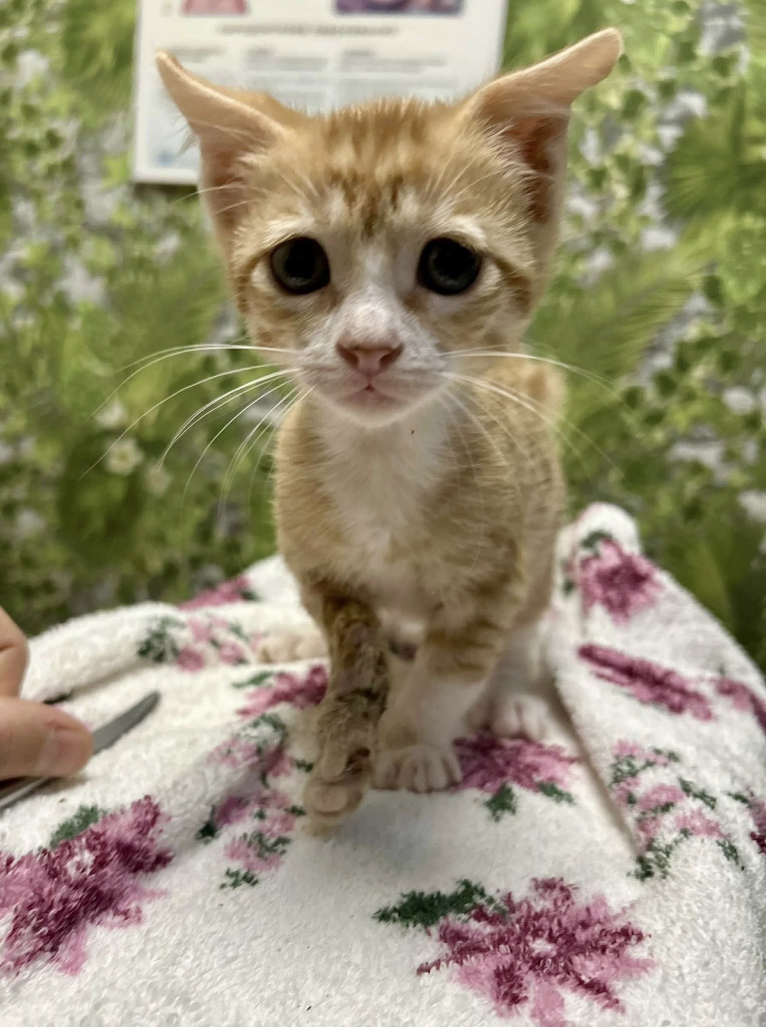 Gute Nachrichten von unserem tapferen Orange! Er braucht momentan keine Amputation. Er benutzt seine Pfote und im Moment sieht alles danach aus, als könne sie erhalten bleiben. Noch lebt Orange mit seinem Bruder Apricot in einer kleinen Quarantänebox, weshalb er leider nicht rennen, springen oder klettern kann. Doch sobald er in eines der Familienzimmer umziehen darf, werden wir genau beobachten, wie er sich bewegt und wie sich seine Pfote weiterentwickelt. Wenn er größer ist, stehen natürlich noch Röntgenaufnahmen und genauere Untersuchungen an aber fürs Erste sind wir einfach nur froh und dankbar, dass es ihm so gut geht🧡