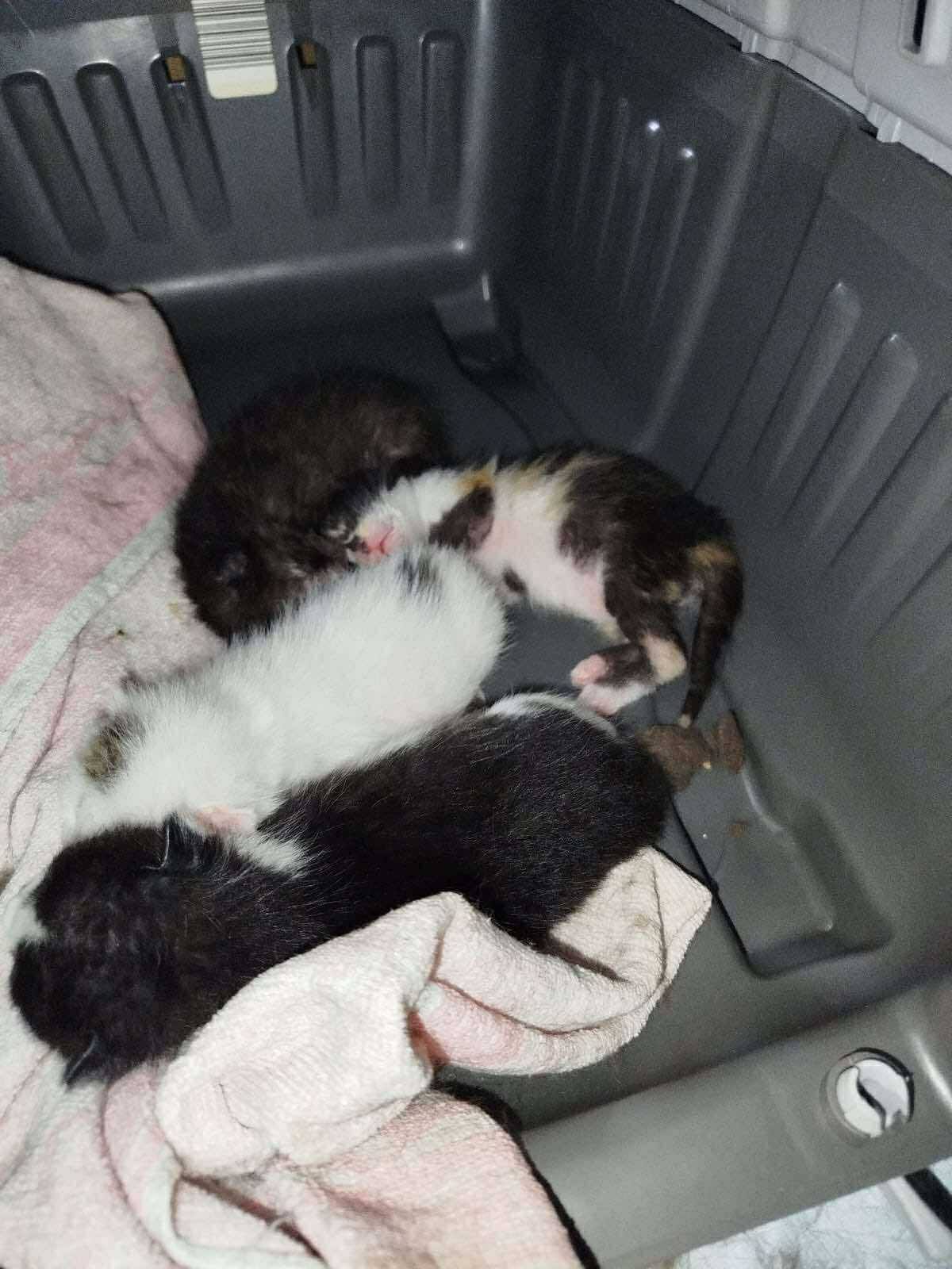 Kurz vor Pfingsten saß direkt vor der Haustüre unserer Elena eine hochträchtige Katze. Es war offensichtlich, dass die Niederkunft bald stattfindet. Die noch junge, werdende Mama suchte sich ein Plätzchen quasi direkt neben der Haustüre in einem Karton. Elena traf die Katze von nun an quasi täglich dort an. Am 04.06.2025 war es dann so weit und die Mama brachte 4 kleine Kitten zur Welt. In dem Karton so direkt von der Straße einsehbar und dazu noch mit viel Publikumsverkehr , war kein geeigneter Platz für die kleine Familie. Elena zögerte nicht und sicherte die Mama mit samt Kitten und brachte Sie auf eine Pflegestelle. Die Mama kümmerte sich vorbildlich um ihren Nachwuchs.