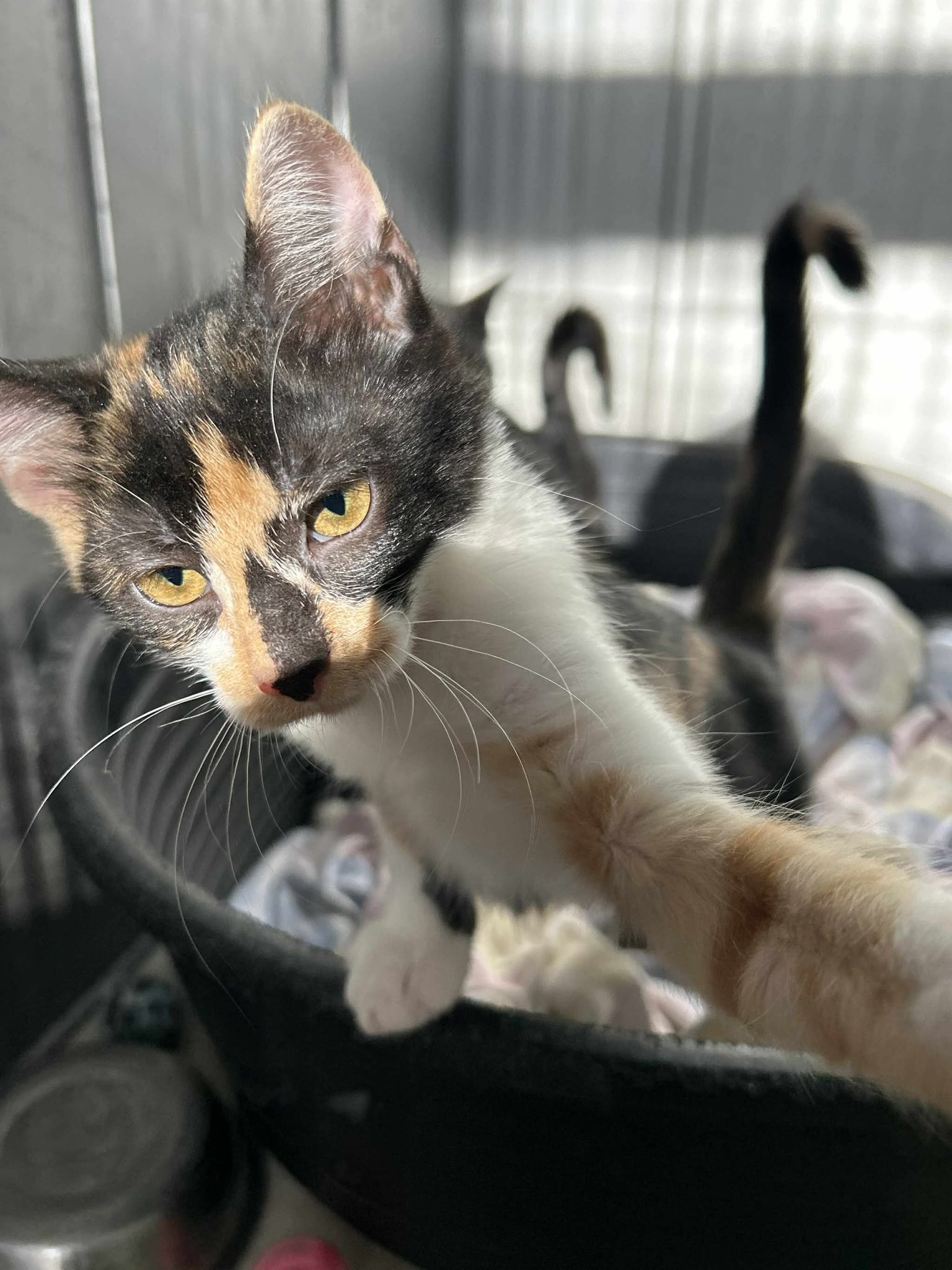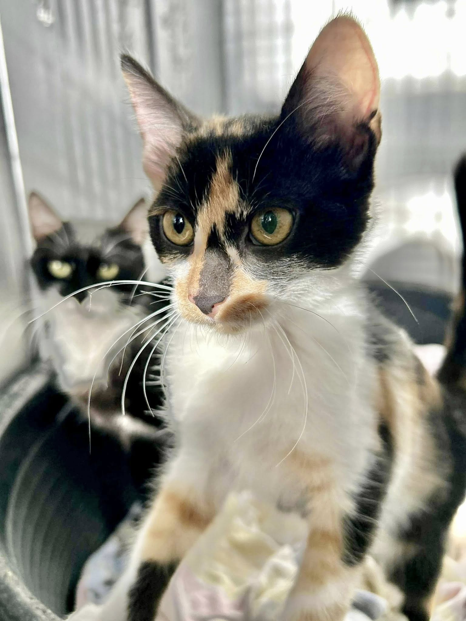 Kurz vor Pfingsten saß direkt vor der Haustüre unserer Elena eine hochträchtige Katze. Es war offensichtlich, dass die Niederkunft bald stattfindet. Die noch junge, werdende Mama suchte sich ein Plätzchen quasi direkt neben der Haustüre in einem Karton. Elena traf die Katze von nun an quasi täglich dort an. Am 04.06.2025 war es dann so weit und die Mama brachte 4 kleine Kitten zur Welt. In dem Karton so direkt von der Straße einsehbar und dazu noch mit viel Publikumsverkehr , war kein geeigneter Platz für die kleine Familie. Elena zögerte nicht und sicherte die Mama mit samt Kitten und brachte Sie auf eine Pflegestelle. Die Mama kümmerte sich vorbildlich um ihren Nachwuchs.