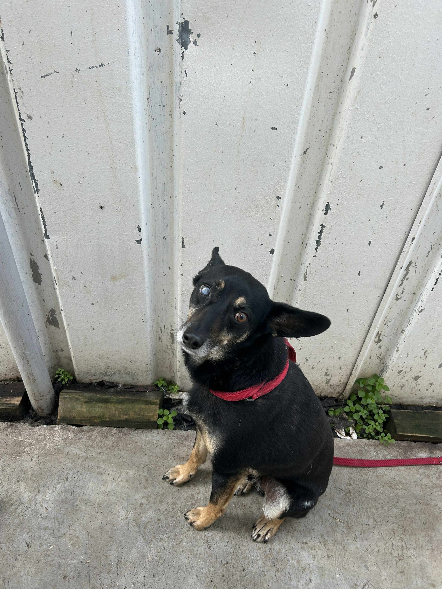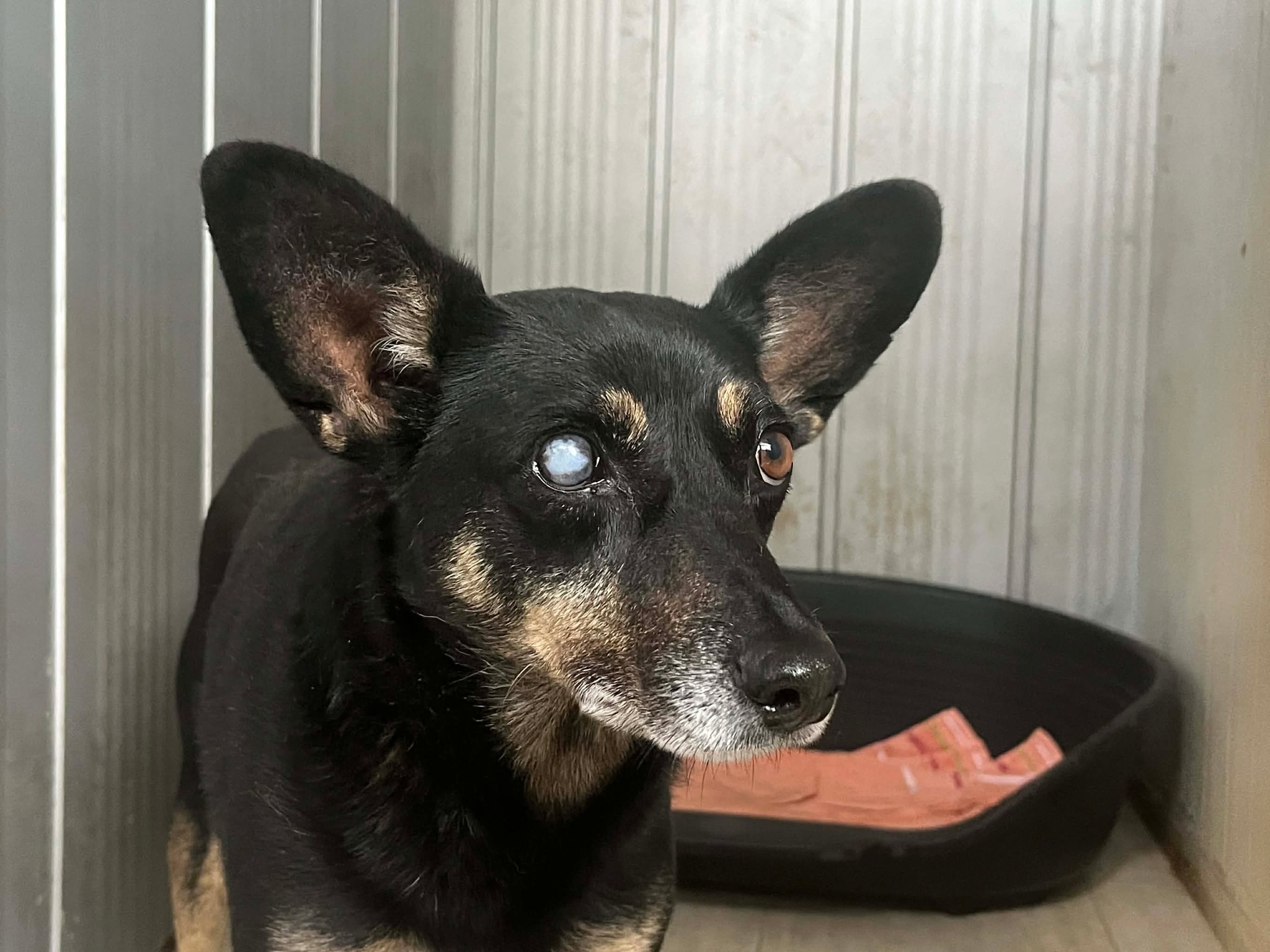 Dieser Neuzugang kam zu uns, weil wir einen Hinweis bekamen, dass er aggressiv wäre. Sein rechtes Auge ist blind. Aktuell zeigt er keine Aggression, aber er soll auch erstmal runterkommen und sich an die neue Situation gewöhnen. Solange wird er nicht angefasst und er kann sich sicher fühlen.
