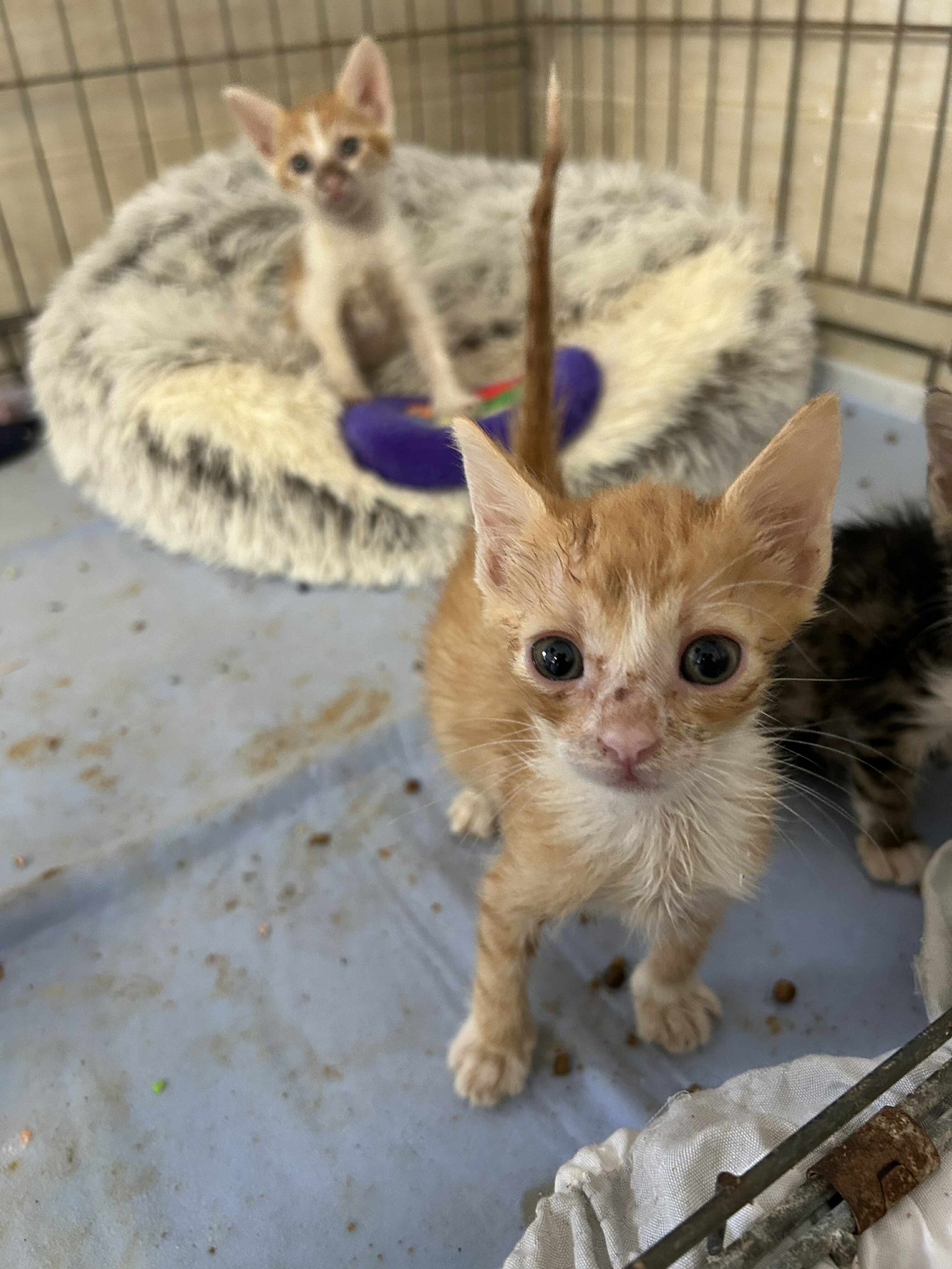 Es hört leider nicht auf und immer wieder die selbe Geschichte. Menschen finden kleine Kitten, aber statt sich selbst darum zu kümmern, wird ein Posting gemacht so nach dem Motto, ach irgendjemand wird sich schon darum kümmern. Bei diesen 4 kleinen Köpfen war es ebenfalls so. Sie waren gerade mal 7 Tage alt, als sie ihrer Mutter entwendet wurden und zum Sterben in einer Pappkiste ausgesetzt wurden. Unsere Engel wurden auf das Posting leider erst nach 36 Stunden aufmerksam und machten sich natürlich sofort auf die Suche. Mit Schrecken mussten sie feststellen, dass niemand geholfen hatte. Kitten in diesem Alter brauchen alle 3-4 Stunden ihre Milch. Unsere Kittenflüsterin fällt leider längerfristig aus und konnte die 4 nicht aufnehmen. So waren wir gezwungen die Hilfe einer kostenpflichtigen Pflegestelle anzunehmen, bis die Kleinen selbstständig fressen konnten. Wir bezahlten pro Tag 10€ zzgl. 2,50€ Verbrauchsmaterial (Unterlagen, Tücher etc.) Insgesamt blieben die kleinen 24 Tage dort, bis sie in den Shelter umziehen konnten. Das macht 266€ Hierfür bräuchten wir dringend finanzielle Unterstützung, da die Kosten leider nicht mit dem Starterkit abgedeckt sind.