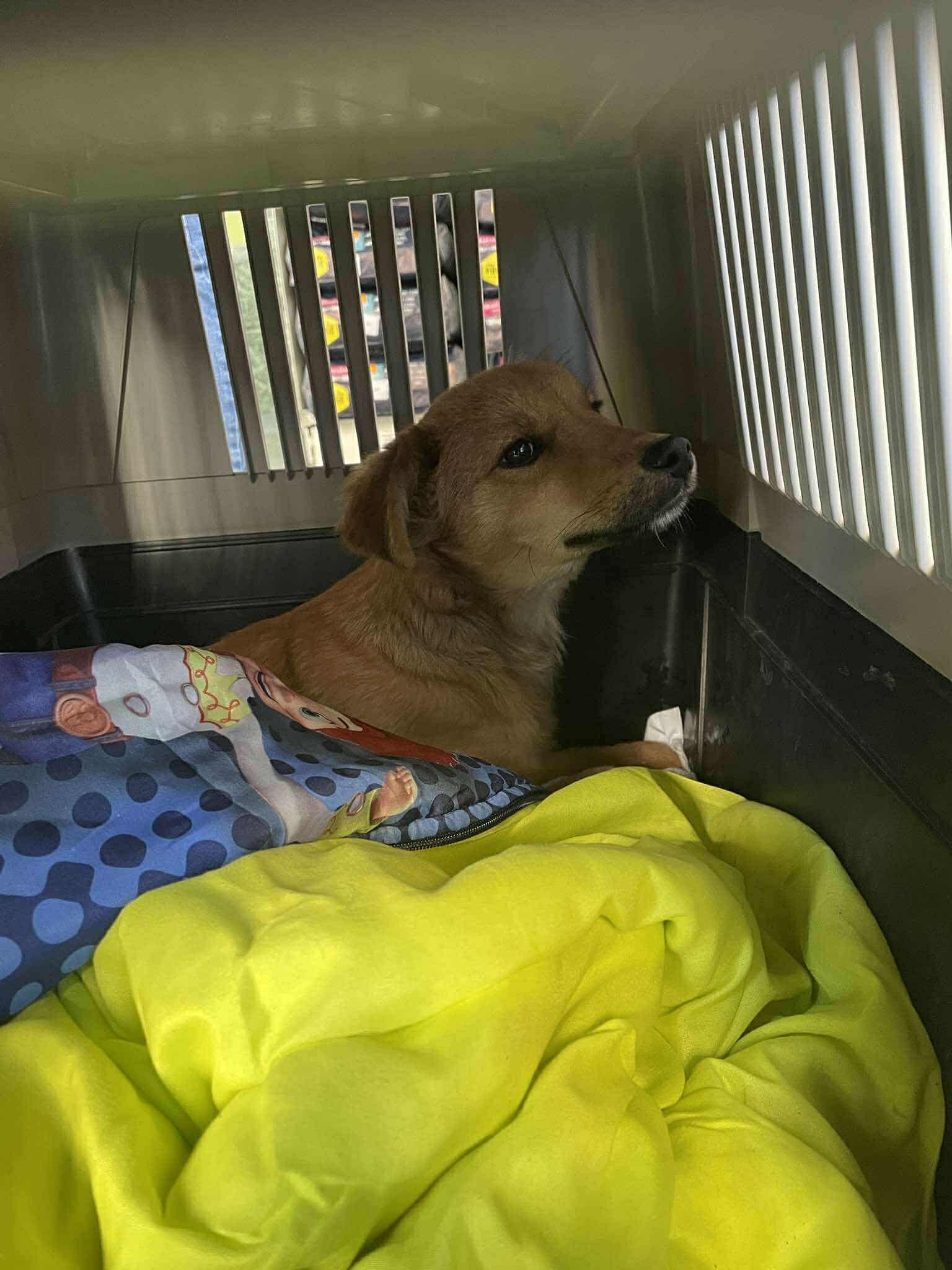 Am 30. Oktober wurde der kleine Welpe von einem Auto angefahren. Die Tierschützerin Milena sah alles und dachte, er sei tot. Dann sah sie, dass er noch lebte, und schaffte es, obwohl sie selbst kein Auto hatte, ein Taxi anzuhalten und den Welpen in die Tierklinik zu bringen. Dort stellte man fest, dass er keine Knochenbrüche hatte, sondern nur unter Schock stand. Nach der Behandlung und den Impfungen fand sich kein Zuhause für ihn …er war dann für eine Woche in einer „Hundepension“ untergebracht und schließlich kam der Kleine zu uns, als wir wieder Platz hatten.