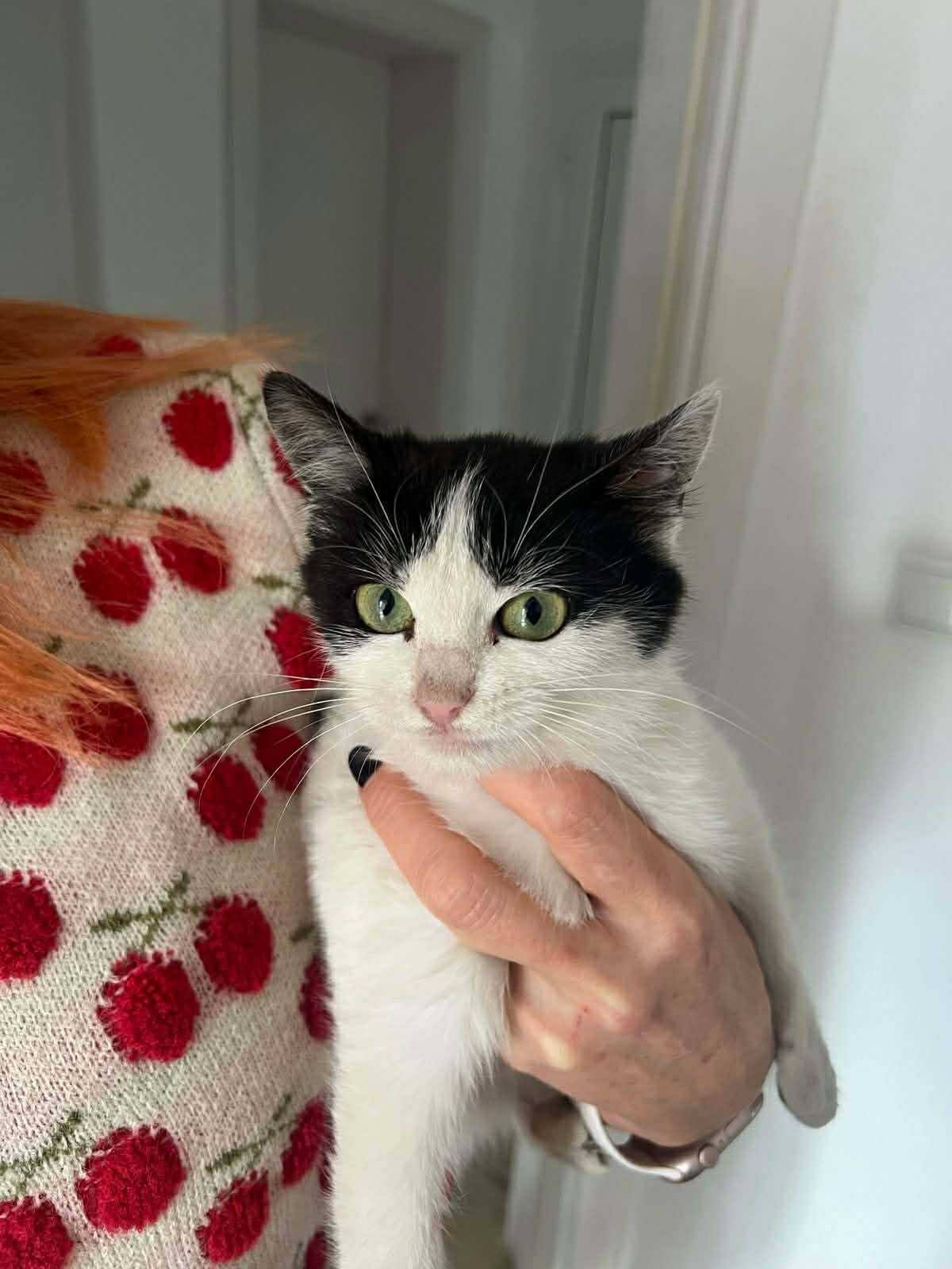 Sie ist ein unglaublich sanftes und verschmustes Kätzchen. Sie hat keine Angst, fährt niemals die Krallen aus und bleibt stets ruhig. Mit anderen Katzen und auch mit Hunden kommt sie problemlos zurecht. Besonders auffallend sind ihre wunderschönen, leuchtend grünen Augen, die sofort das Herz berühren.