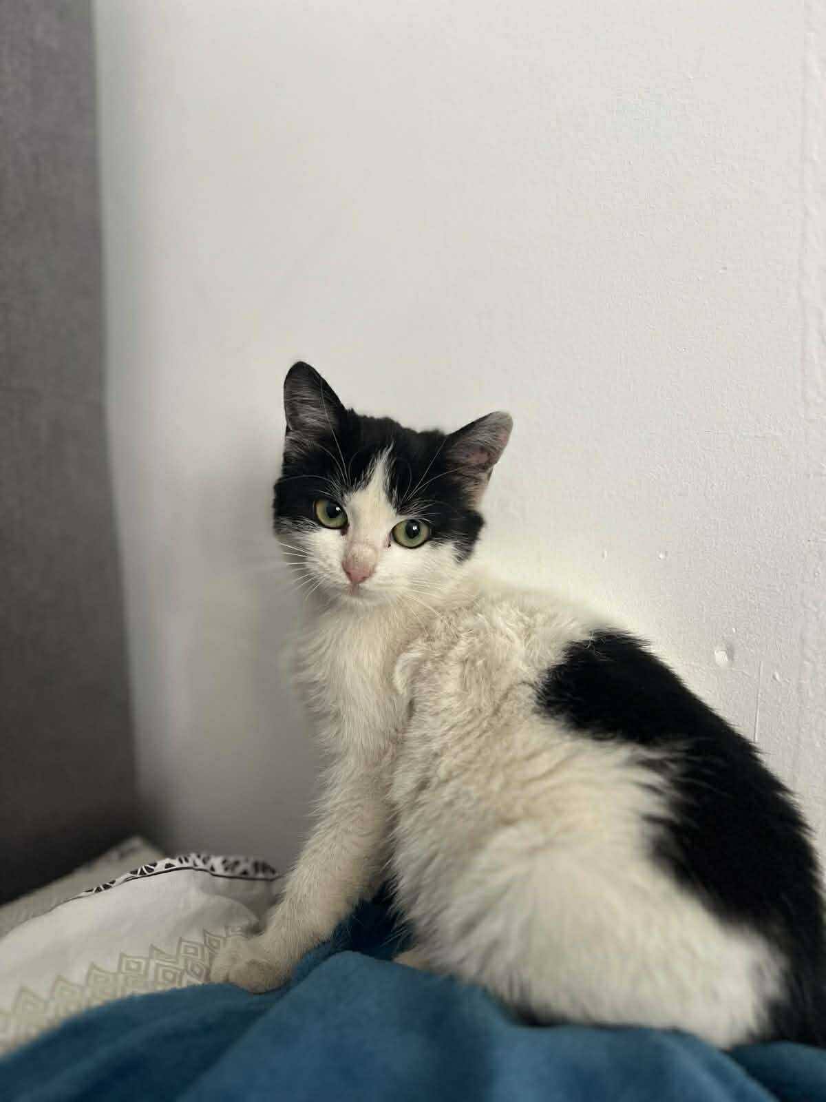 Das Kätzchen ist erst drei Monate alt. Immer wieder versucht sie, in das Büro zu gelangen, weil die älteren Katzen, die sie dort seit Jahren versorgt, sie vertreiben wollen. Die Schüler der Schule hänseln sie, füttern sie mit Kuchen und Croissants, ohne zu verstehen, wie schädlich das für sie ist. Mit dem nahenden Winter fiel schließlich die Entscheidung, sie aufzunehmen und ihr Schutz zu geben.