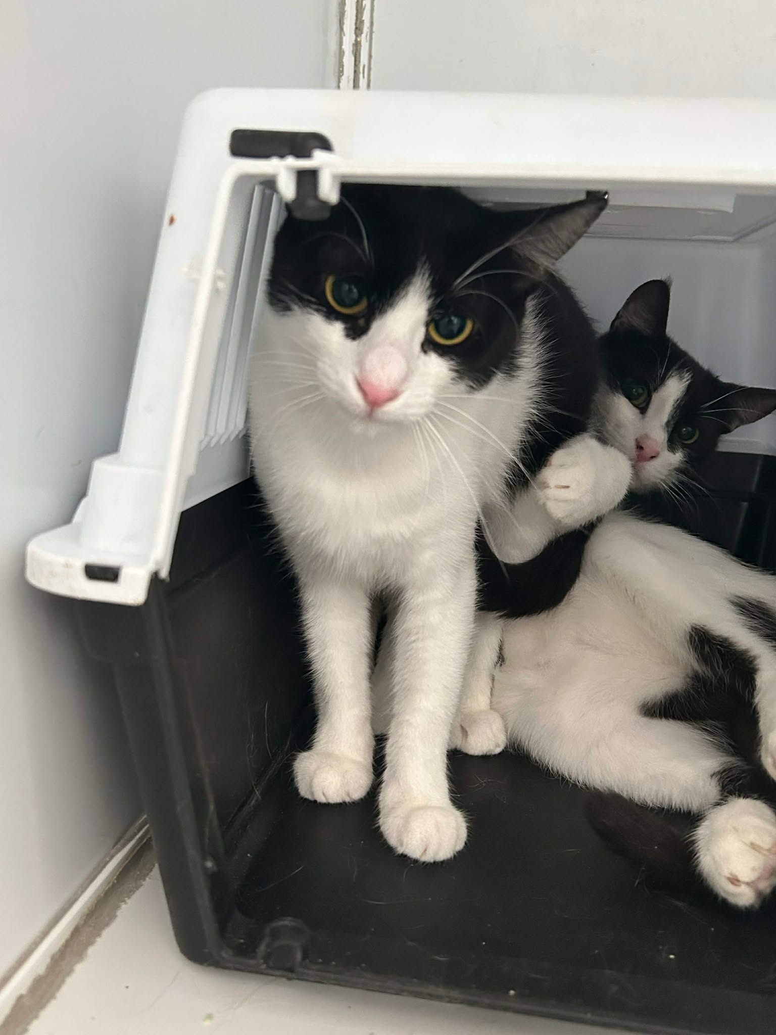 Die nächsten beiden Neuzugänge sind schüchtern. Sie lebten an einem Ort, der zu gefährlich war für Katzen. Deshalb wurden sie mit einer Lebendfalle gesichert, medizinisch versorgt und anschließend kastriert. Mittlerweile sind sie im Tierheim. Jeden Tag wird behutsam mit ihnen gearbeitet – und es gibt Fortschritte. Sie verstecken sich nicht mehr in ihren Käfigen, zeigen mehr Vertrauen. Die weibliche Katze lässt sich inzwischen sogar berühren. Der Kater greift nicht mehr an. Schon bald werden beide in einen freien Raum umziehen, in dem intensiv weiter an ihrer Sozialisierung gearbeitet wird.